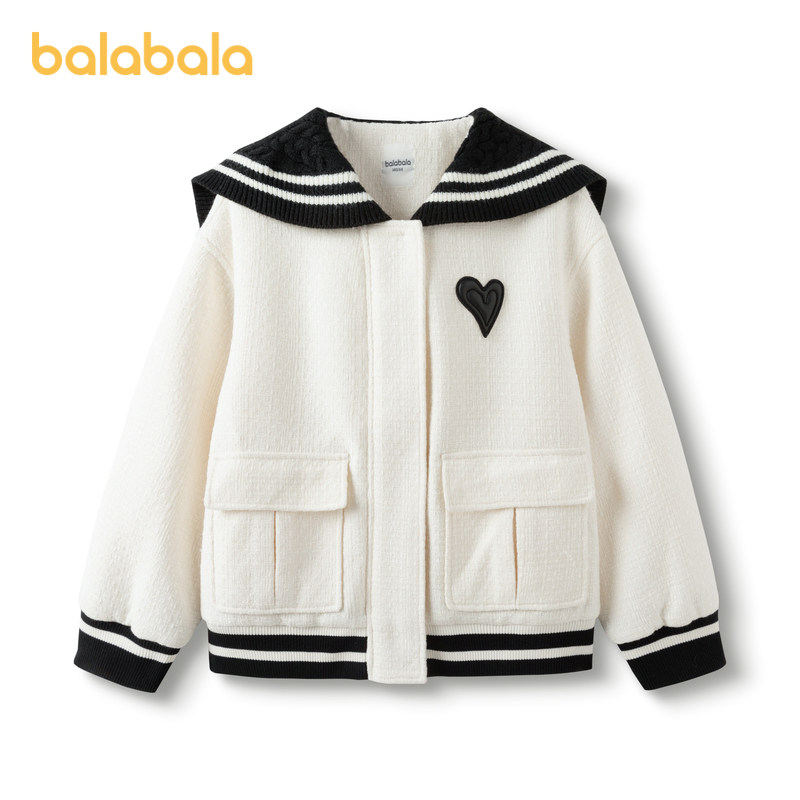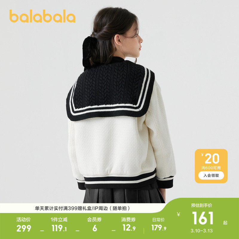 巴拉巴拉童装儿童棉衣女童外套秋冬季中大童翻领短款棉服时尚保暖