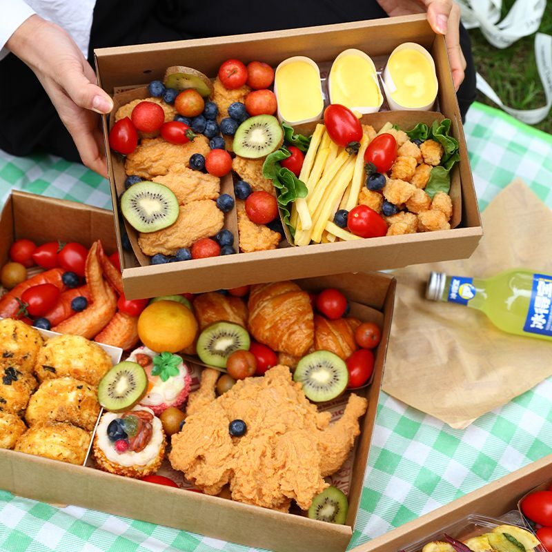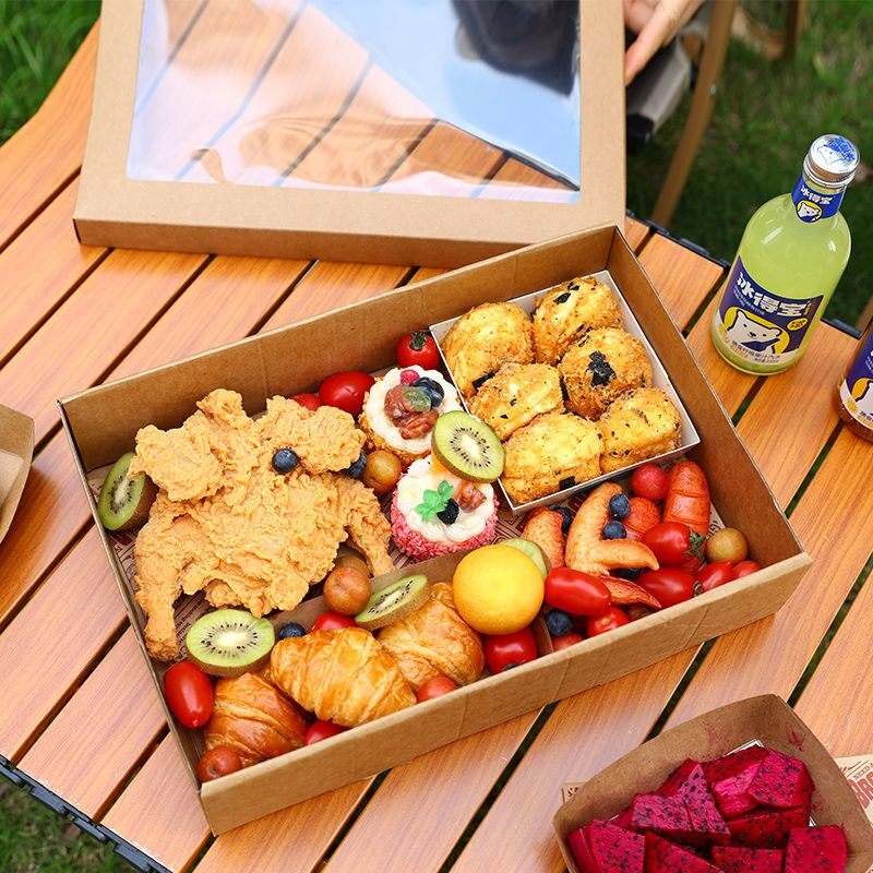 牛皮纸野餐盒子一次性户外露营包装盒水果烤肉春游纸盒打包外卖盒