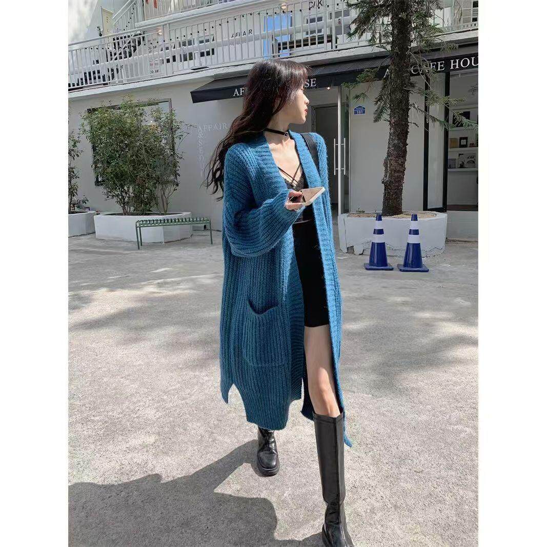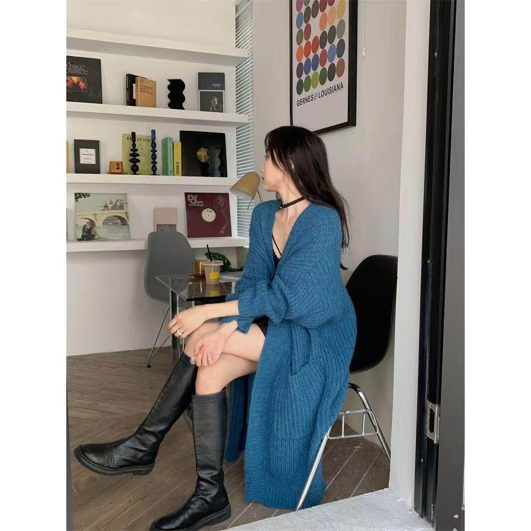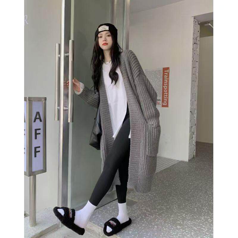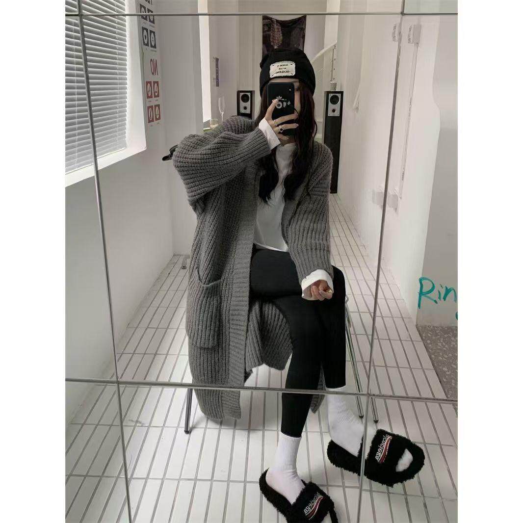 毛衣女秋冬慵懒风灰色加厚外套新款高级感宽松中长款开衫上衣日系