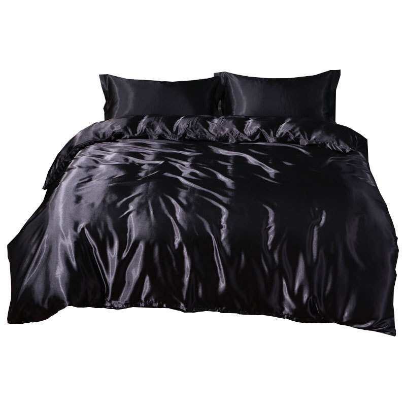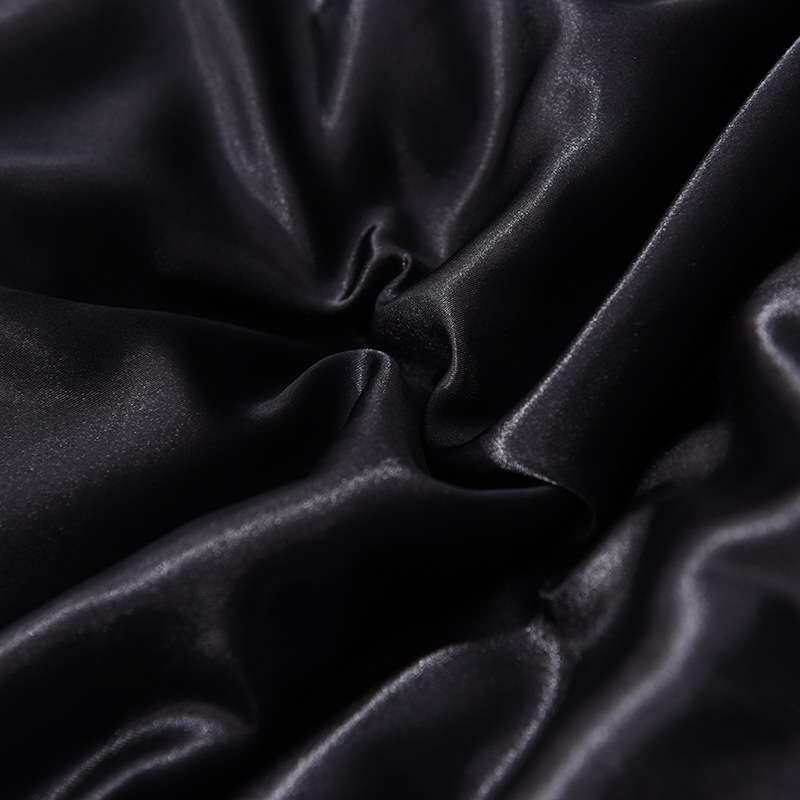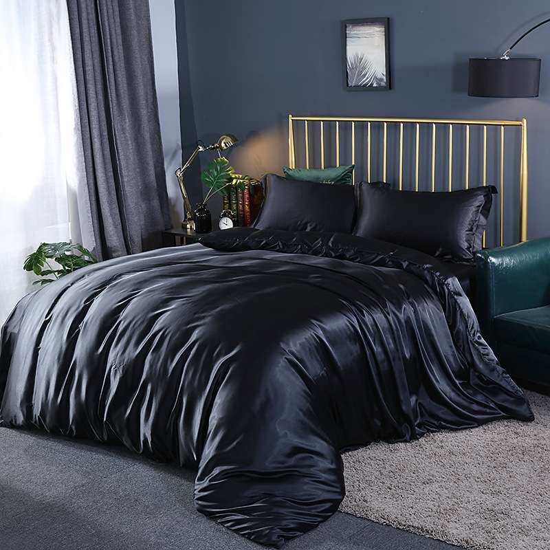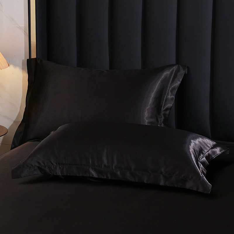 夏天冰丝四件套黑色简约丝滑裸睡纯色床单被套凉感宿舍床上三件套