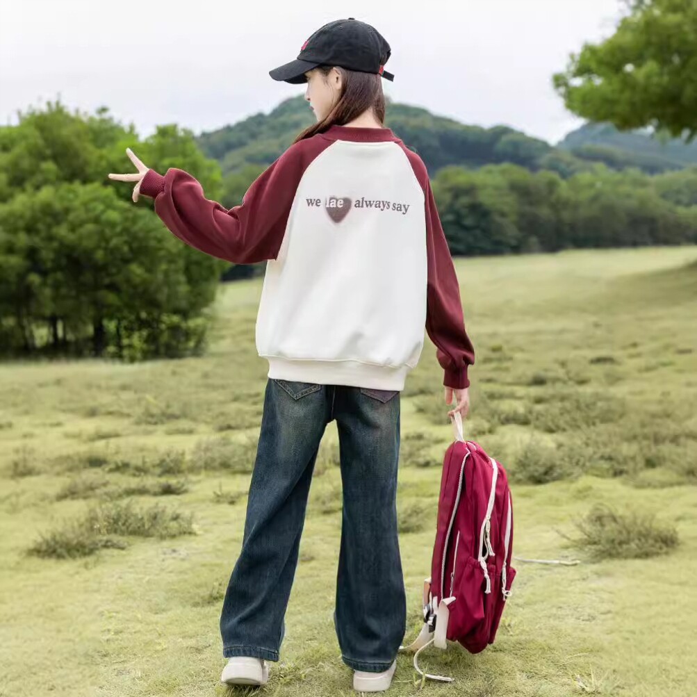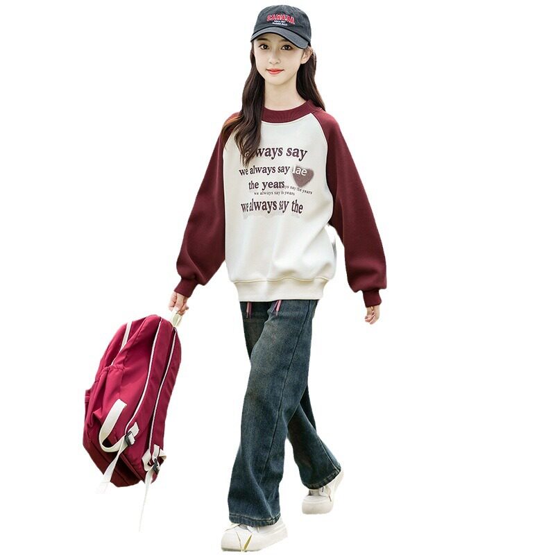 青少年女装学生初中生搭配套装女童卫衣秋装洋气秋季韩版印花圆领