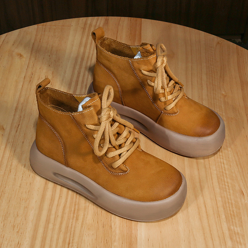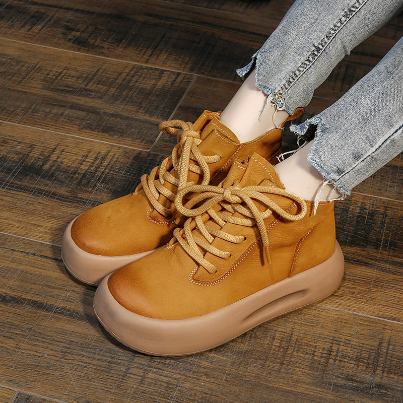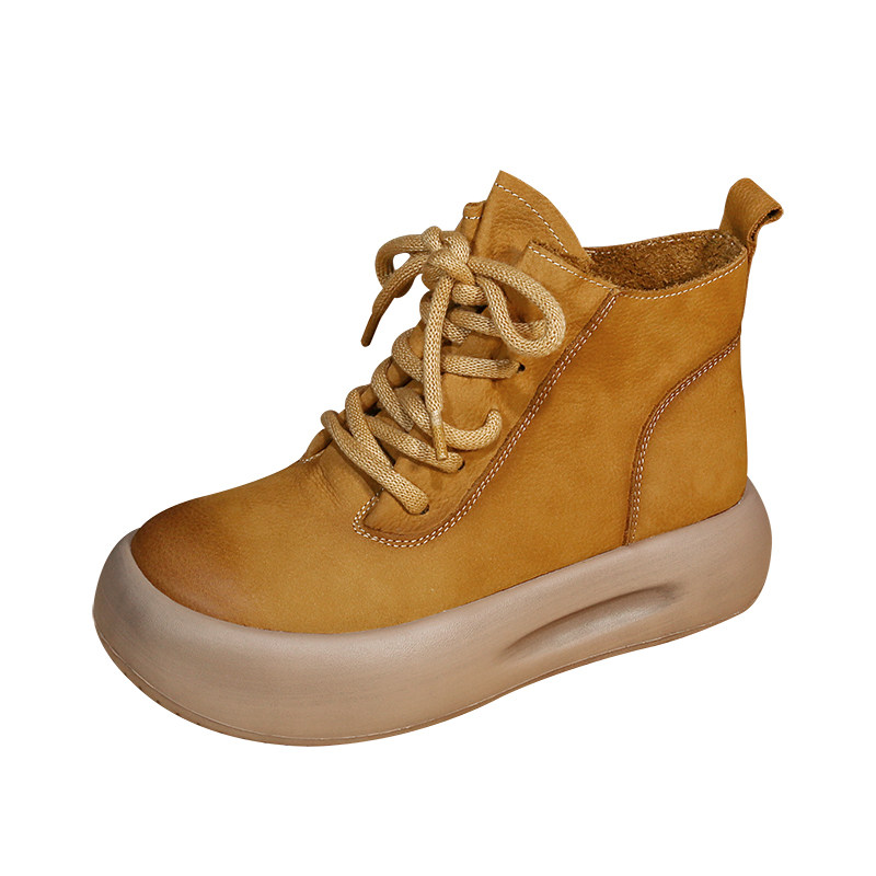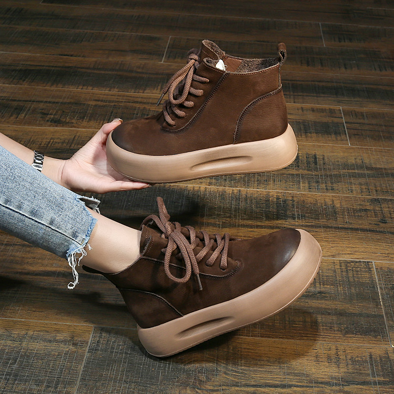 头层牛皮短靴女复古风2026春秋新款厚底高帮休闲单鞋平底马丁靴女