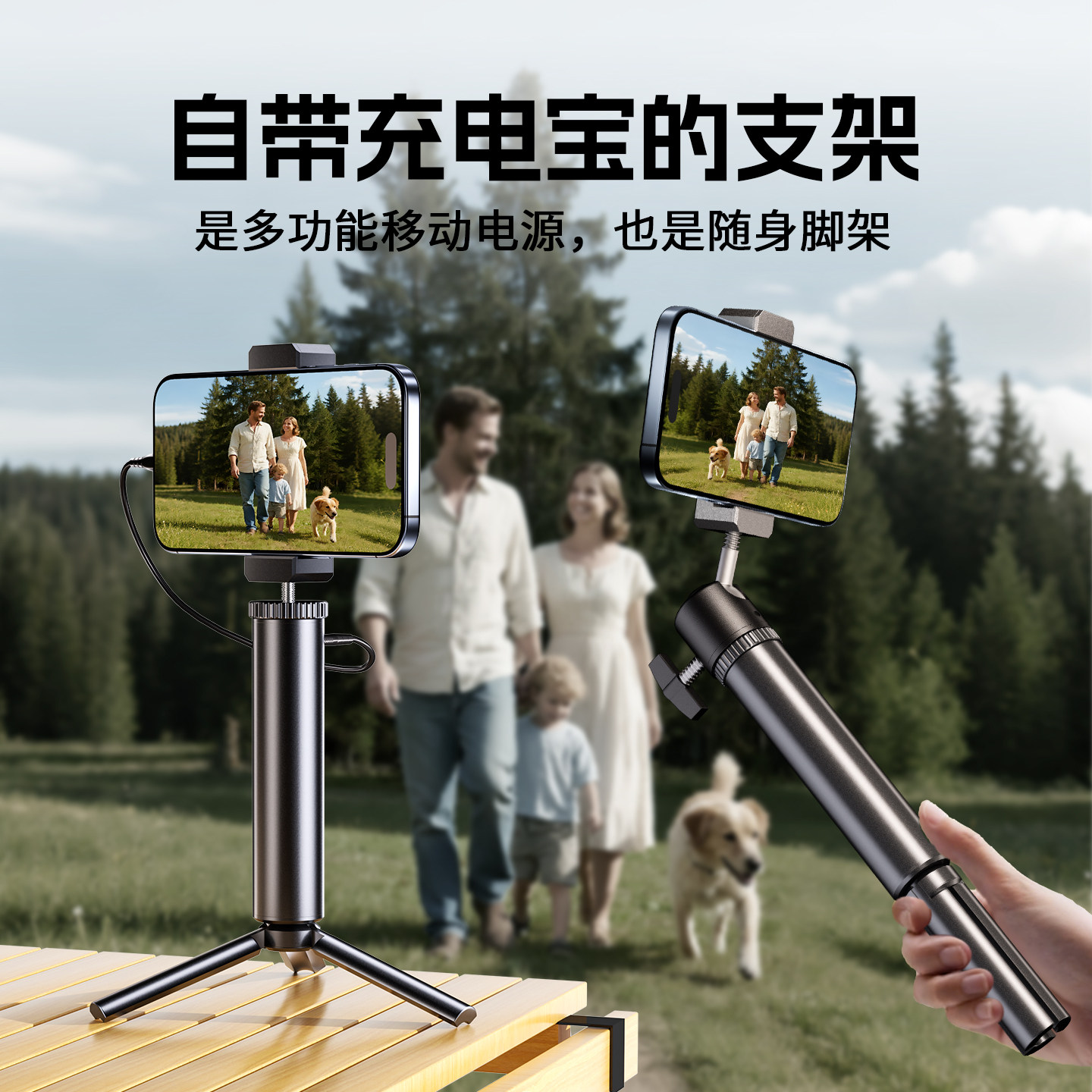 3C认证铝合金充电手柄手持支架云台摄像配件手机直播专用大容量充电宝移动电源户外GoPro适用Action大疆