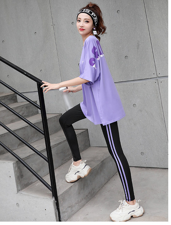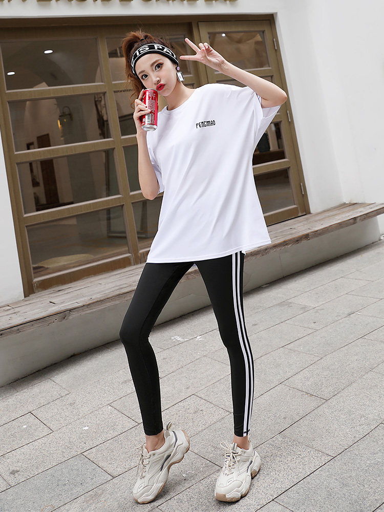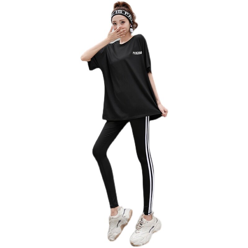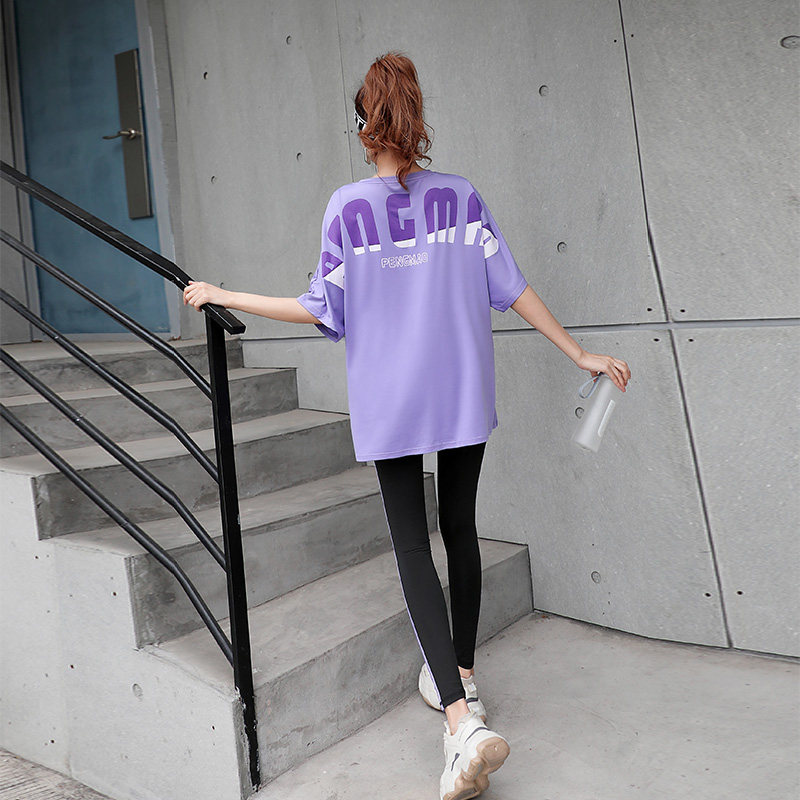 大码胖MM健身服女200斤瑜伽服套装女遮肉中长款短袖t恤上衣遮屁股