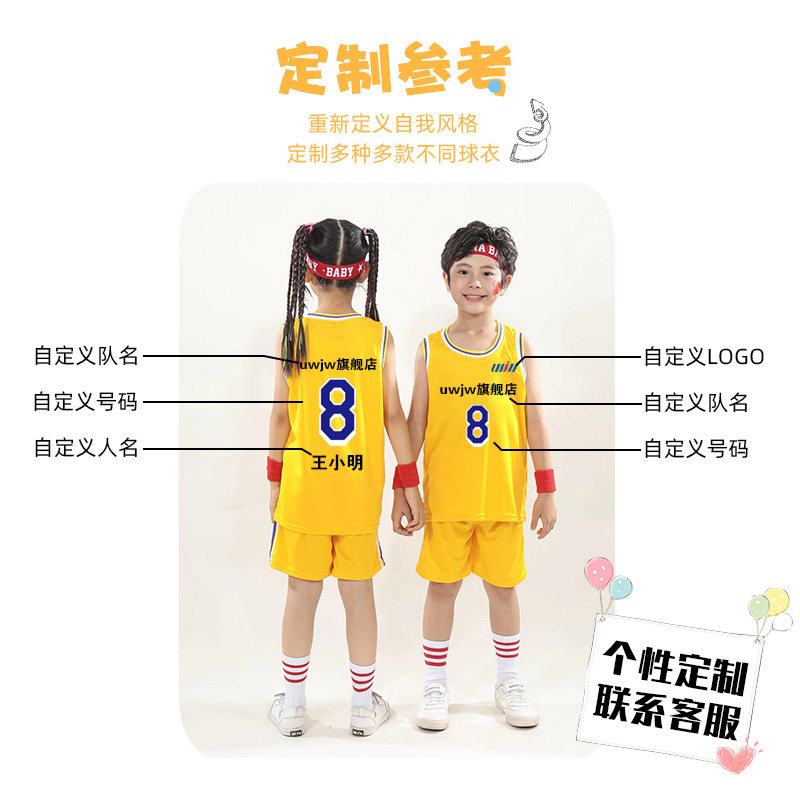 詹姆斯球衣23号儿童背心训练服套装定制6号女速干科比篮球服男童