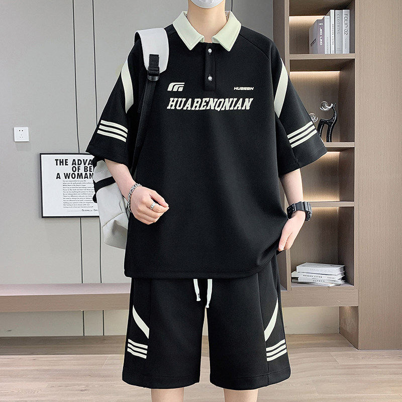 青少年夏季薄款短袖t恤男孩12-15岁初中学生半袖polo衫13大童套装
