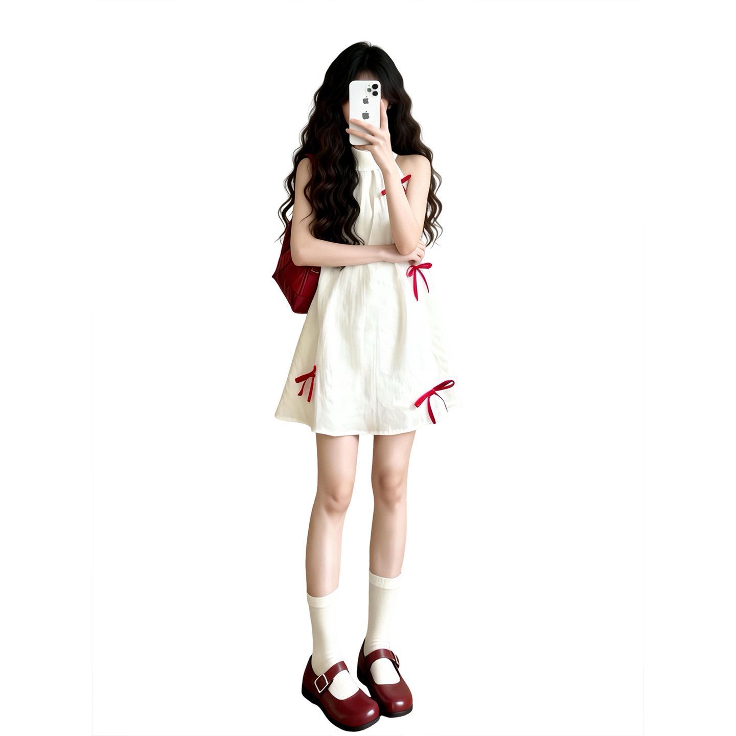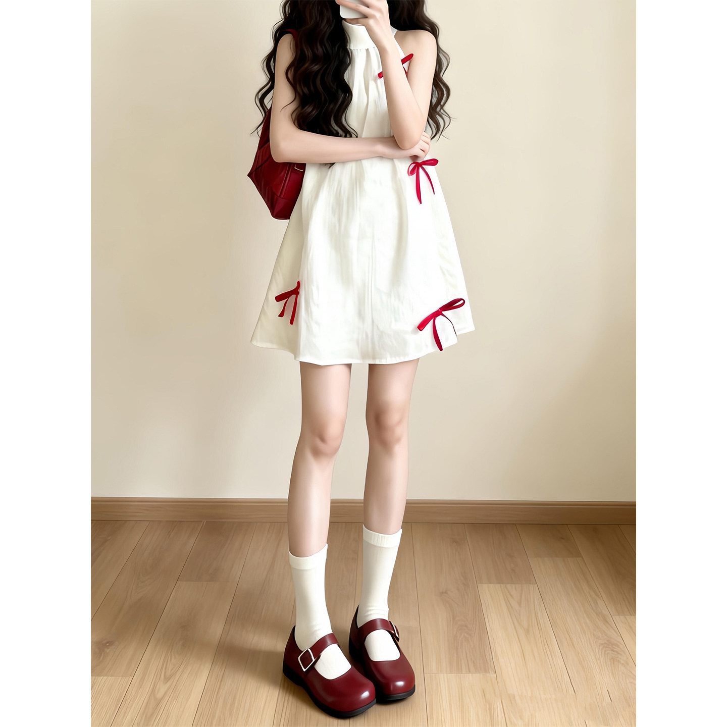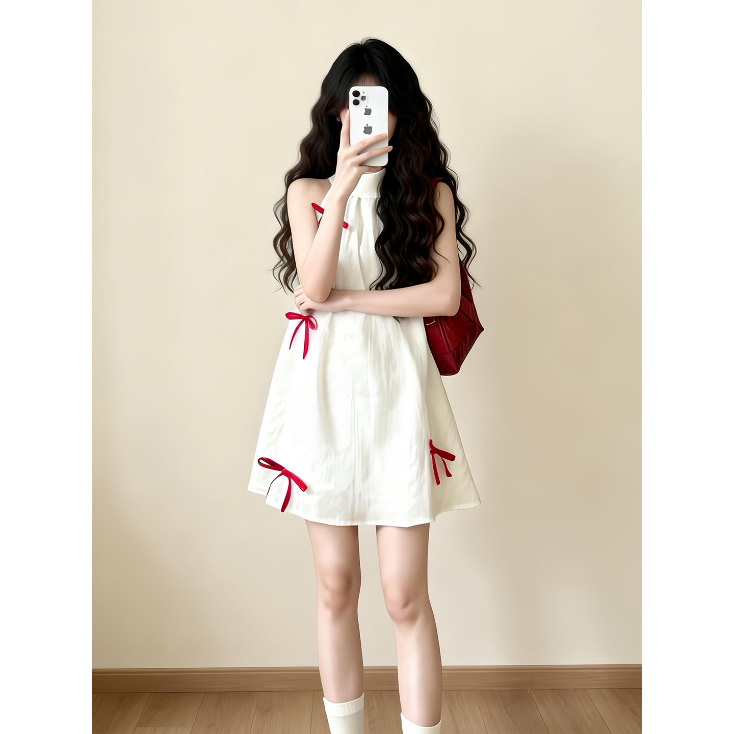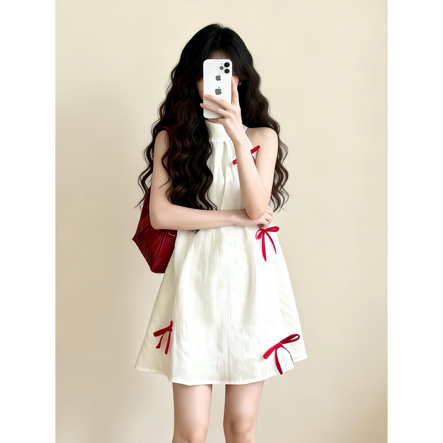 法式小个子白色挂脖连衣裙子女2026夏季新款巨好看的海边度假短裙