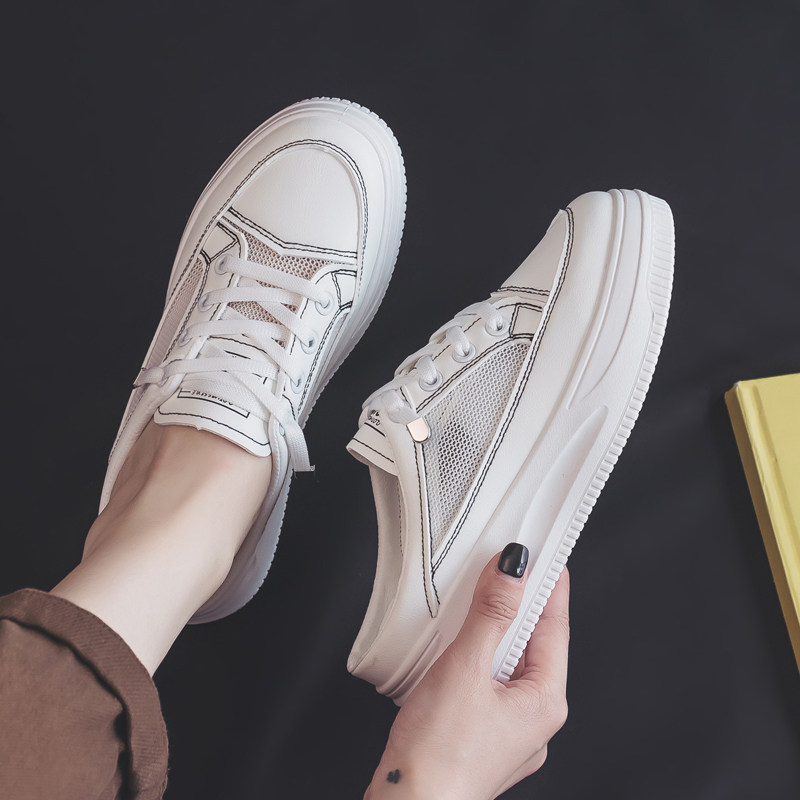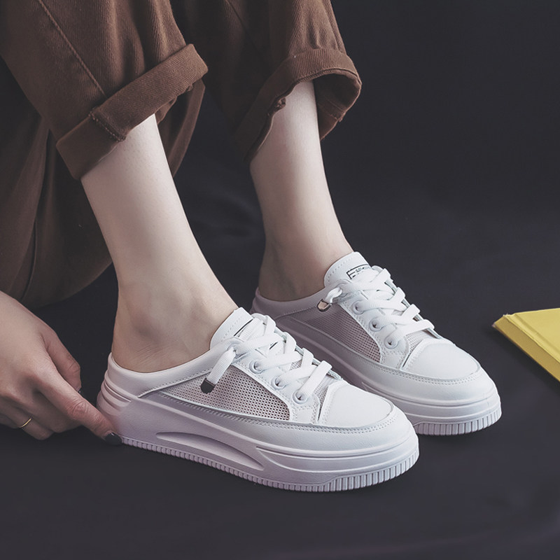 2024夏季薄款网面小白女鞋新款百搭透气网鞋一脚蹬懒人半拖鞋爆款