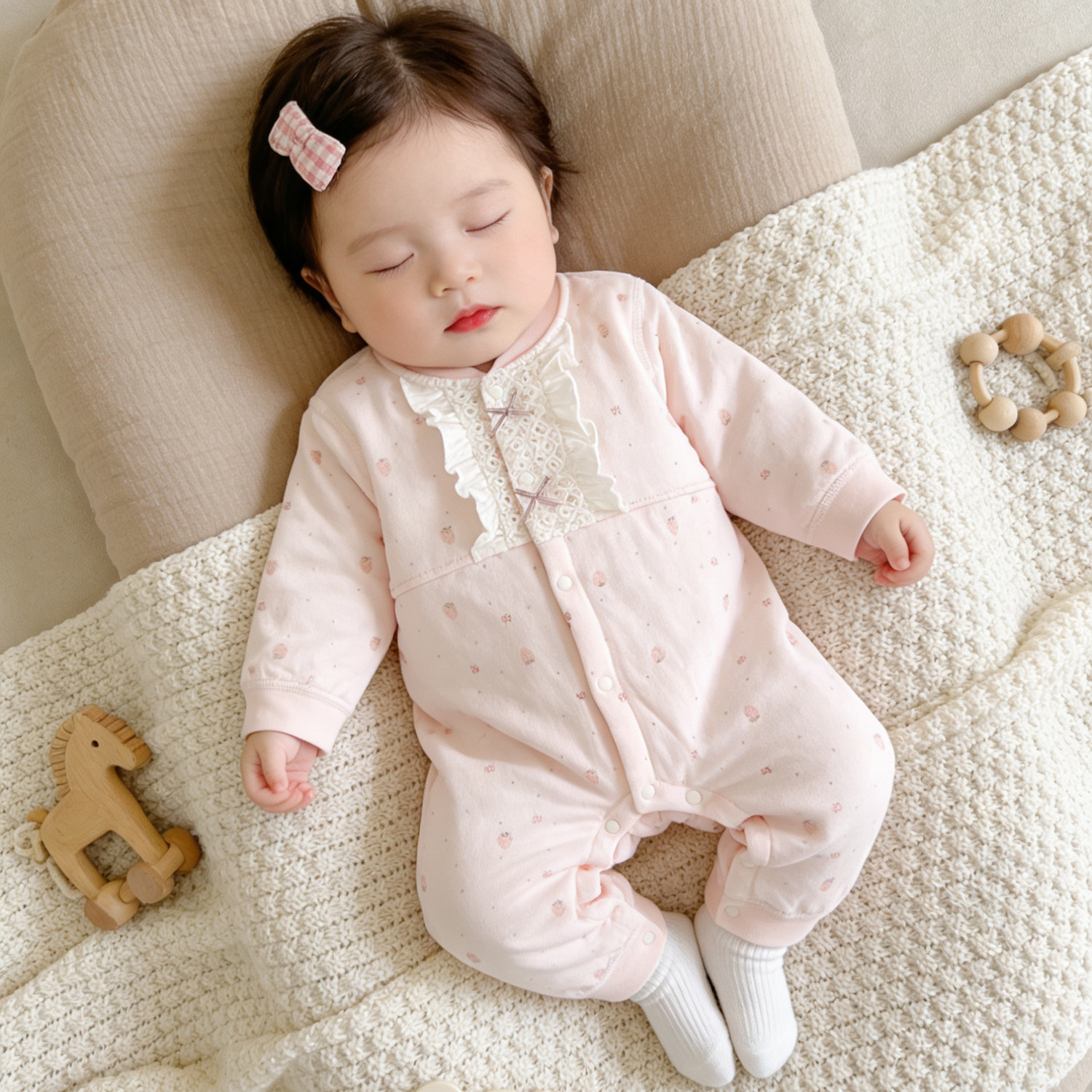 新生婴儿薄棉连体衣服满月女宝宝哈衣爬服春秋冬季纯棉A类早春装