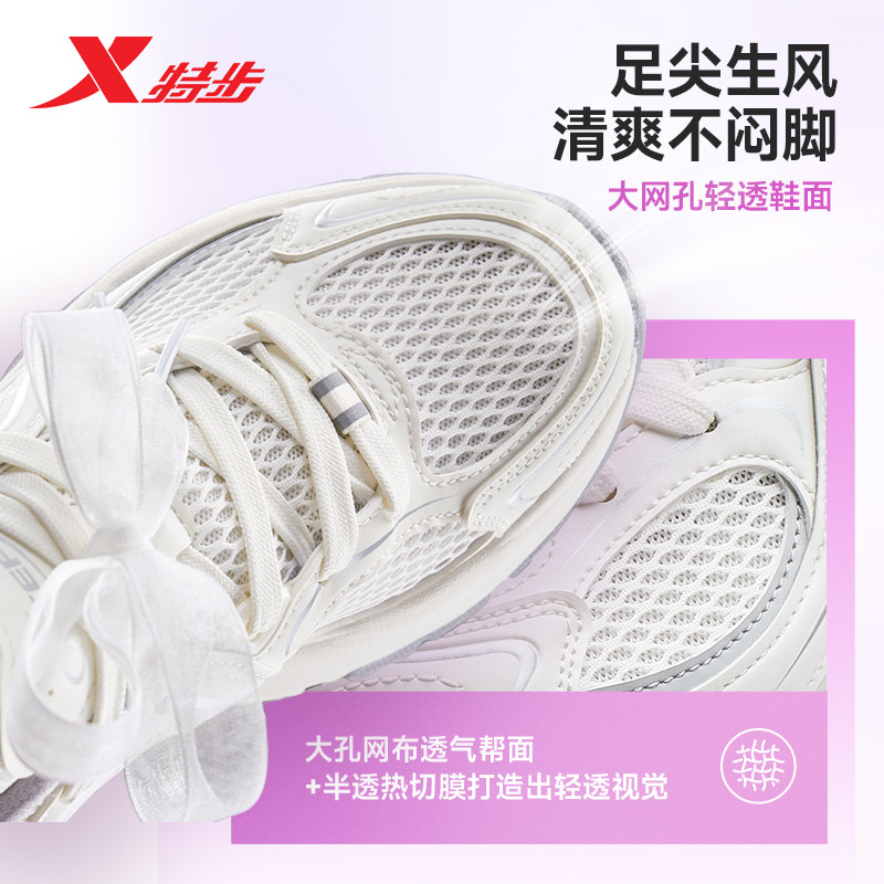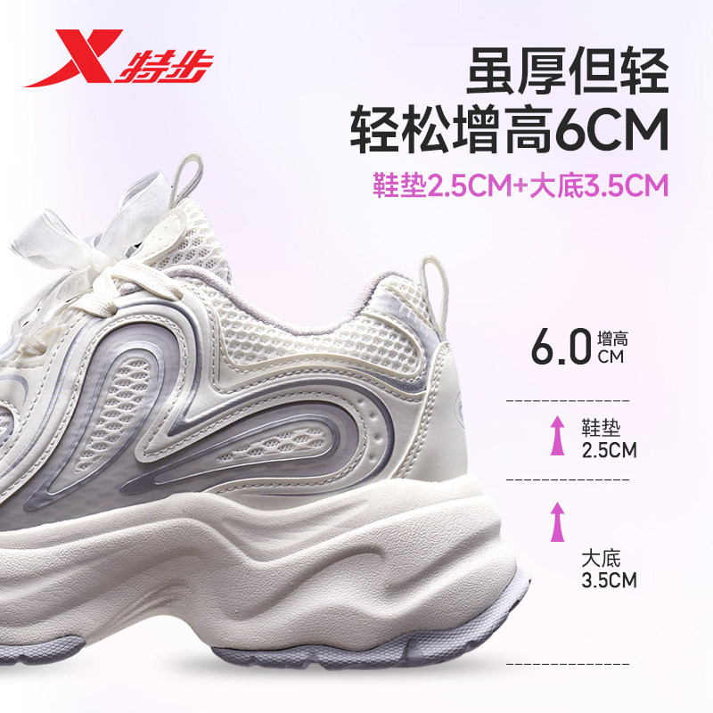 特步巴斯克丨休闲鞋女鞋夏季网面厚底增高老爹鞋潮流百搭运动鞋