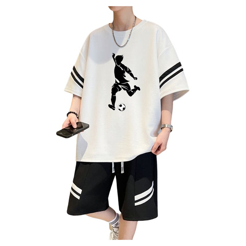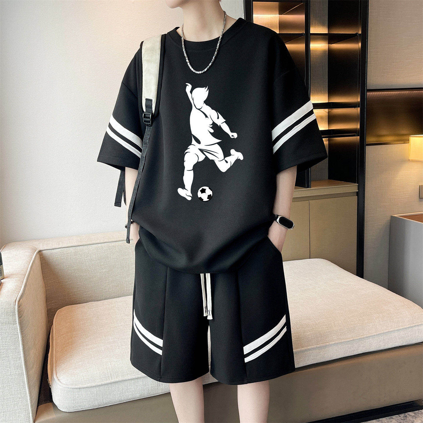 夏季青少年潮流帅气短袖t恤男孩初中学生半袖胖大童运动两件套装