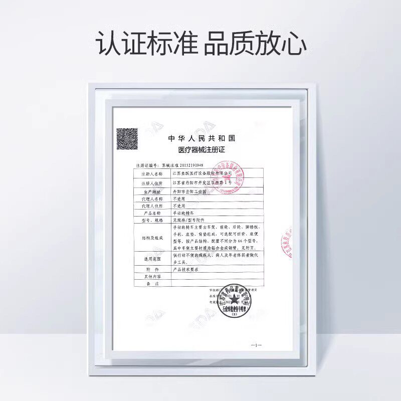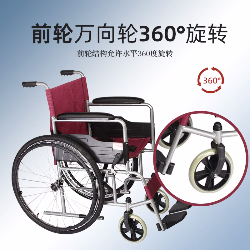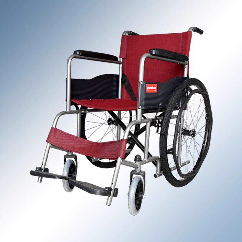 鱼跃轮椅车H007 可折叠轻便手动钢管软座老人病人代步车减震充气