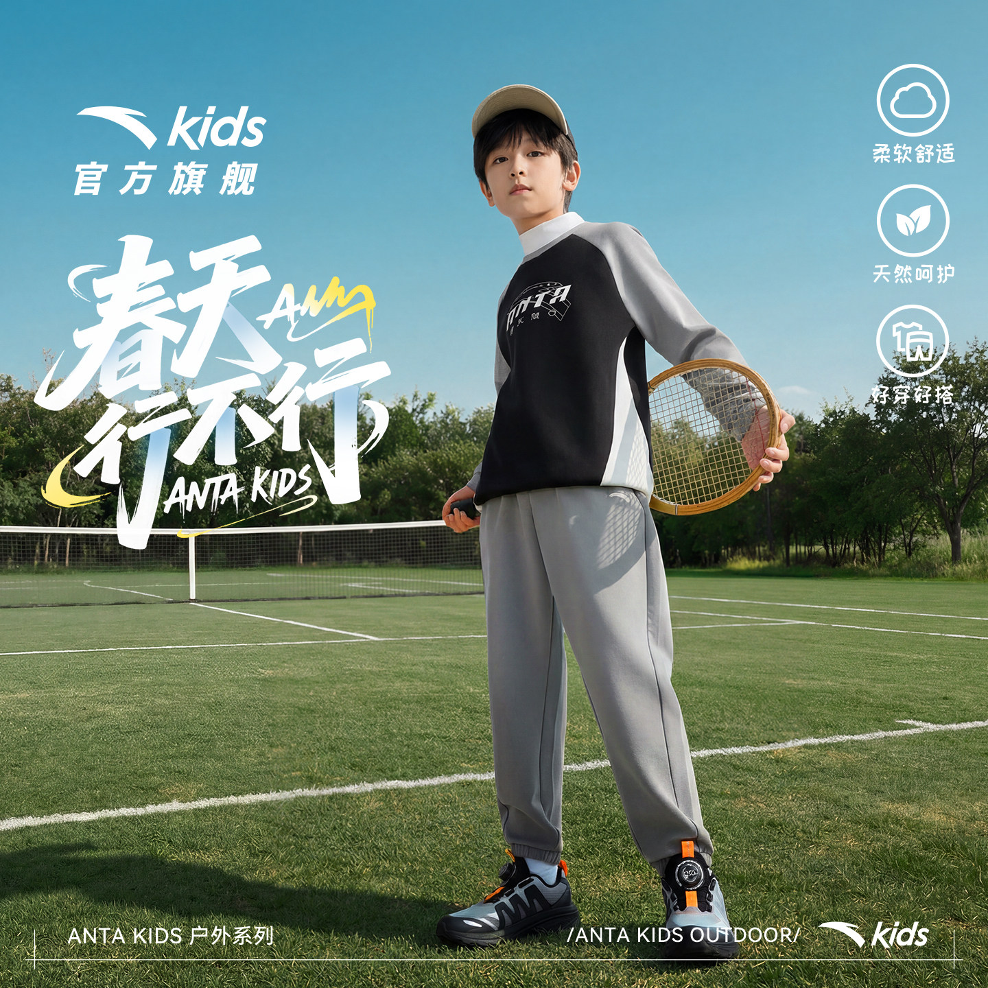 安踏儿童男女童针织运动套2026年春新款中大童卫衣卫裤运动套装潮
