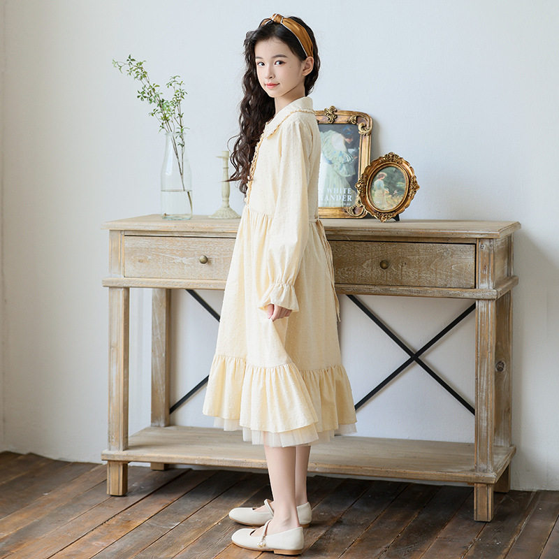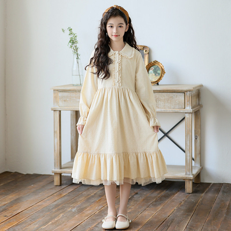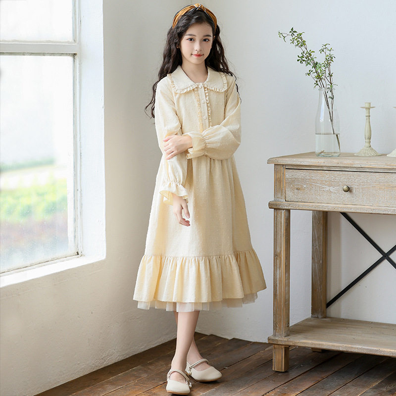 女童新款连衣裙春秋长袖提花裙子2026中大童儿童洋气小女孩公主裙