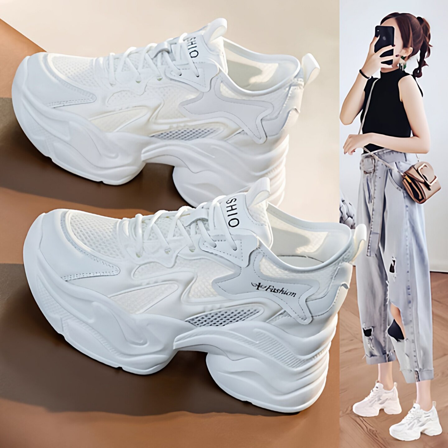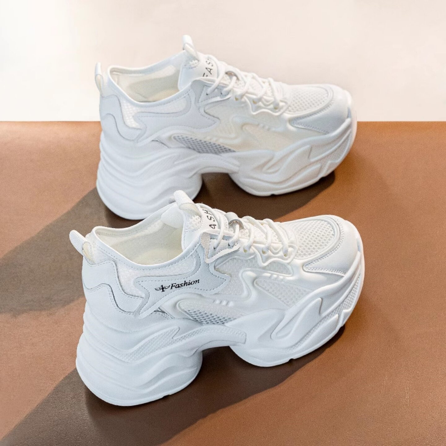 内增高老爹鞋女款2026夏季新款网面透气小个子厚底休闲运动小白鞋