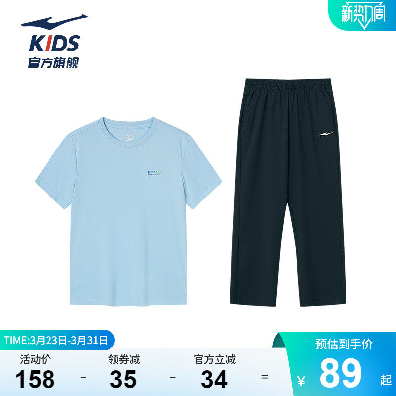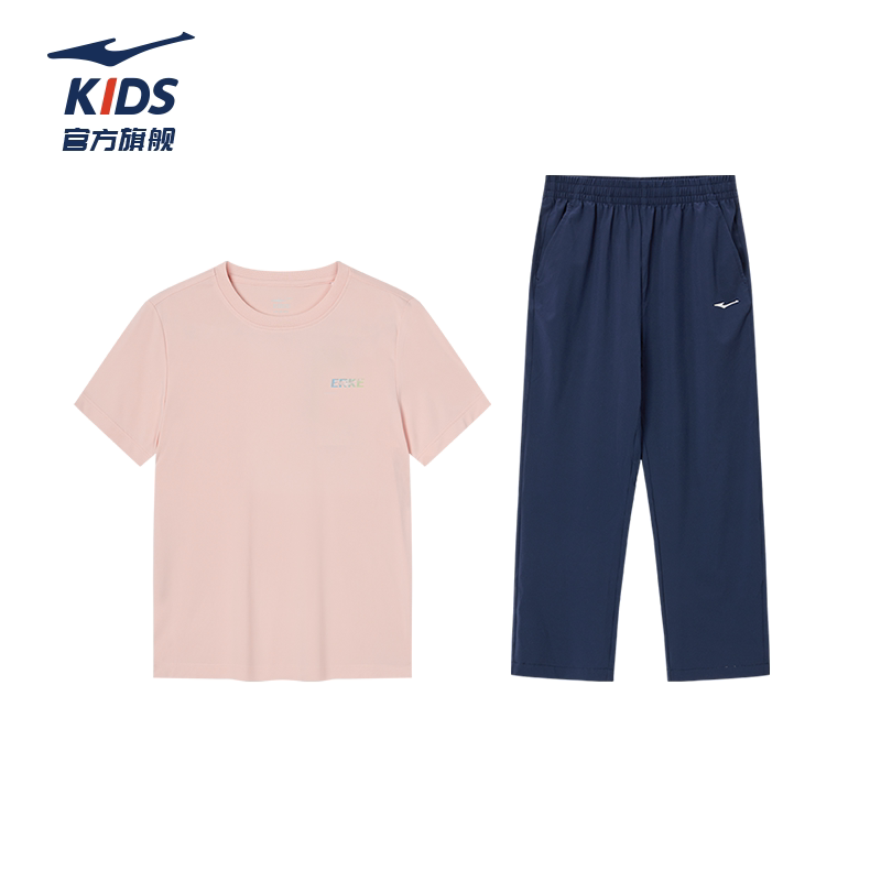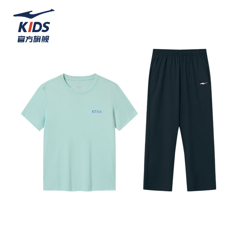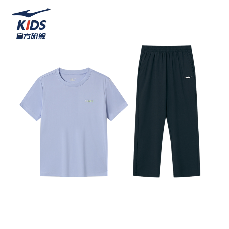 鸿星尔克男童夏季套装短袖长裤两件套运动速干女童T恤防蚊裤套装