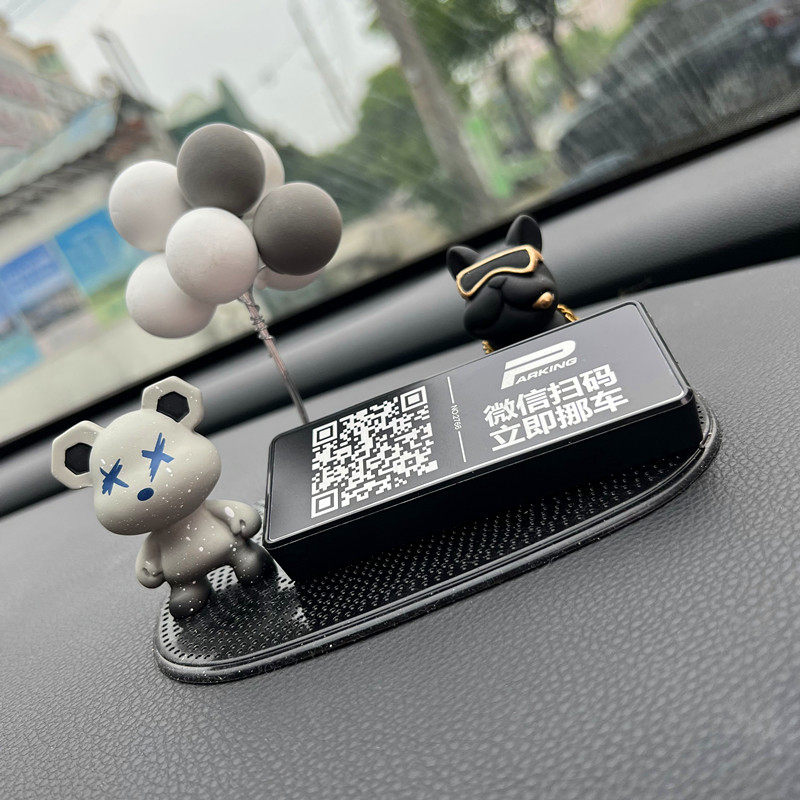 创意暴力熊临时停车号码牌扫码二维码挪车移车电话汽车用品摆件男