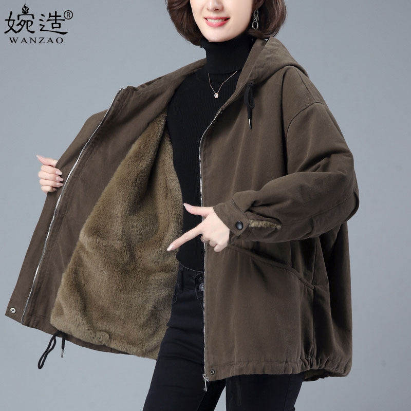加绒保暖外套中年新款派克羊羔棉服加厚大码毛冬季棉衣宽松女妈妈