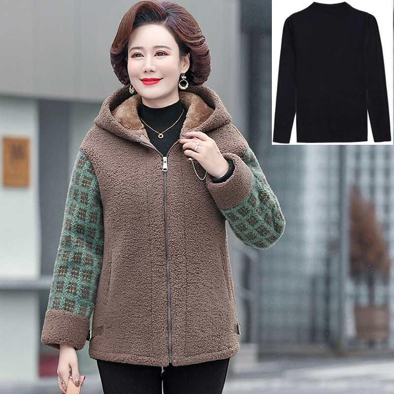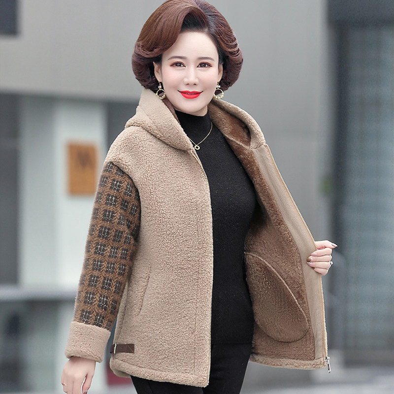 妈妈冬装颗粒绒上衣2026新款中老年棉衣女加绒加厚大码羊羔毛外套
