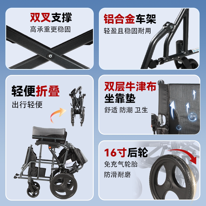 凯洋轮椅车轻便小型可折叠扶手可掀铝合金居家旅行老人专用手推车