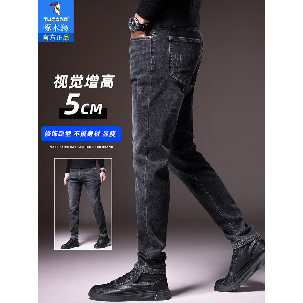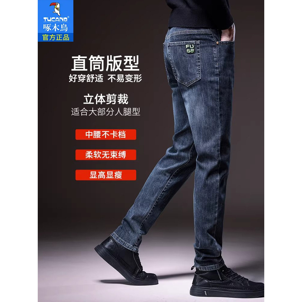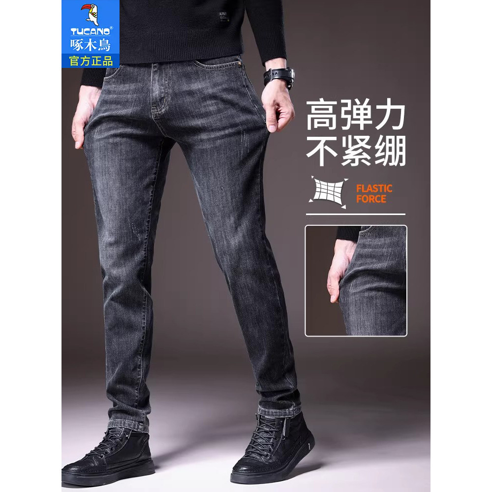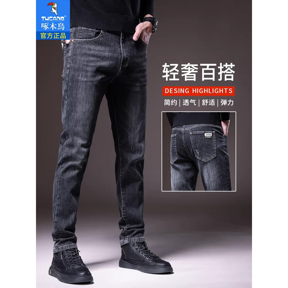 啄木鸟春季牛仔裤男款2026新款潮牌高端修身小直筒休闲百搭长裤子