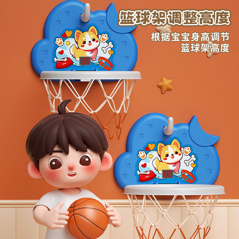 儿童体育玩具打篮球板计分投圈圈男女孩室内运动投篮框球类小皮球