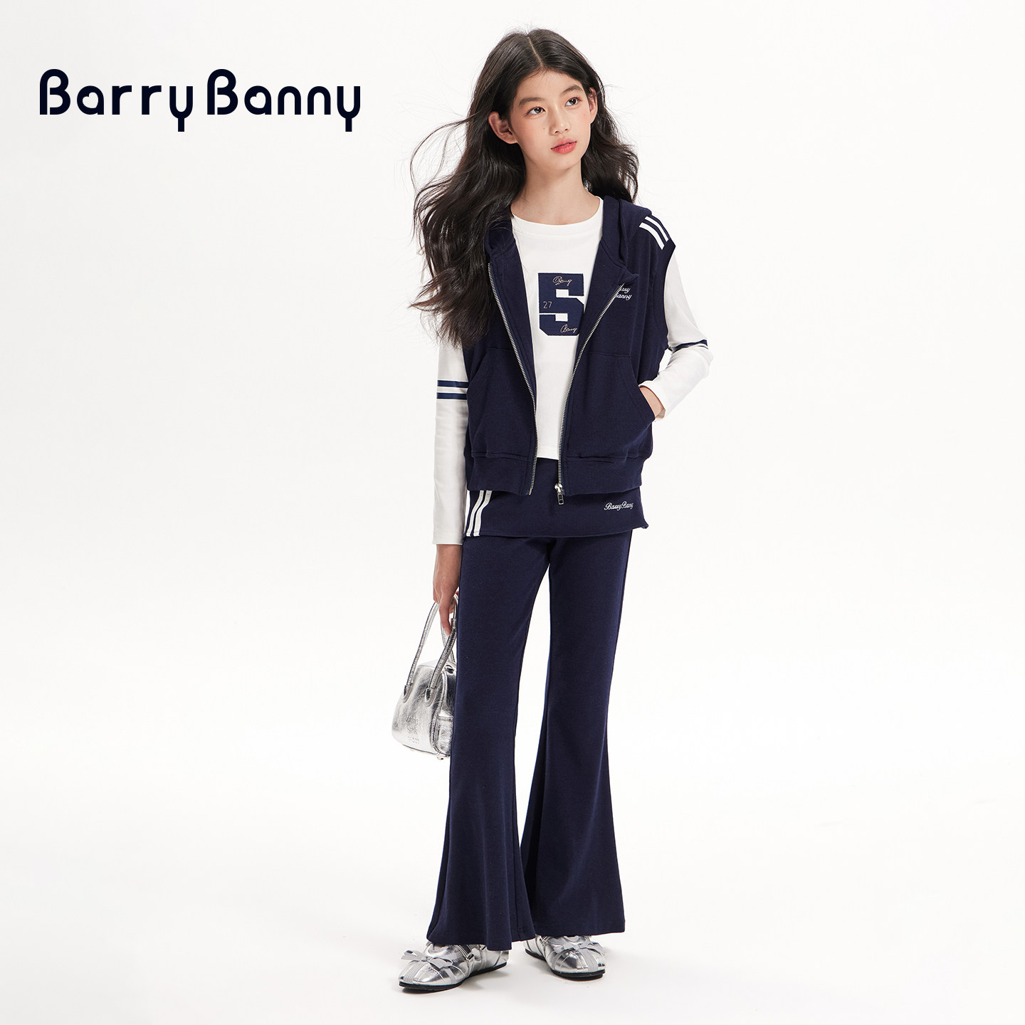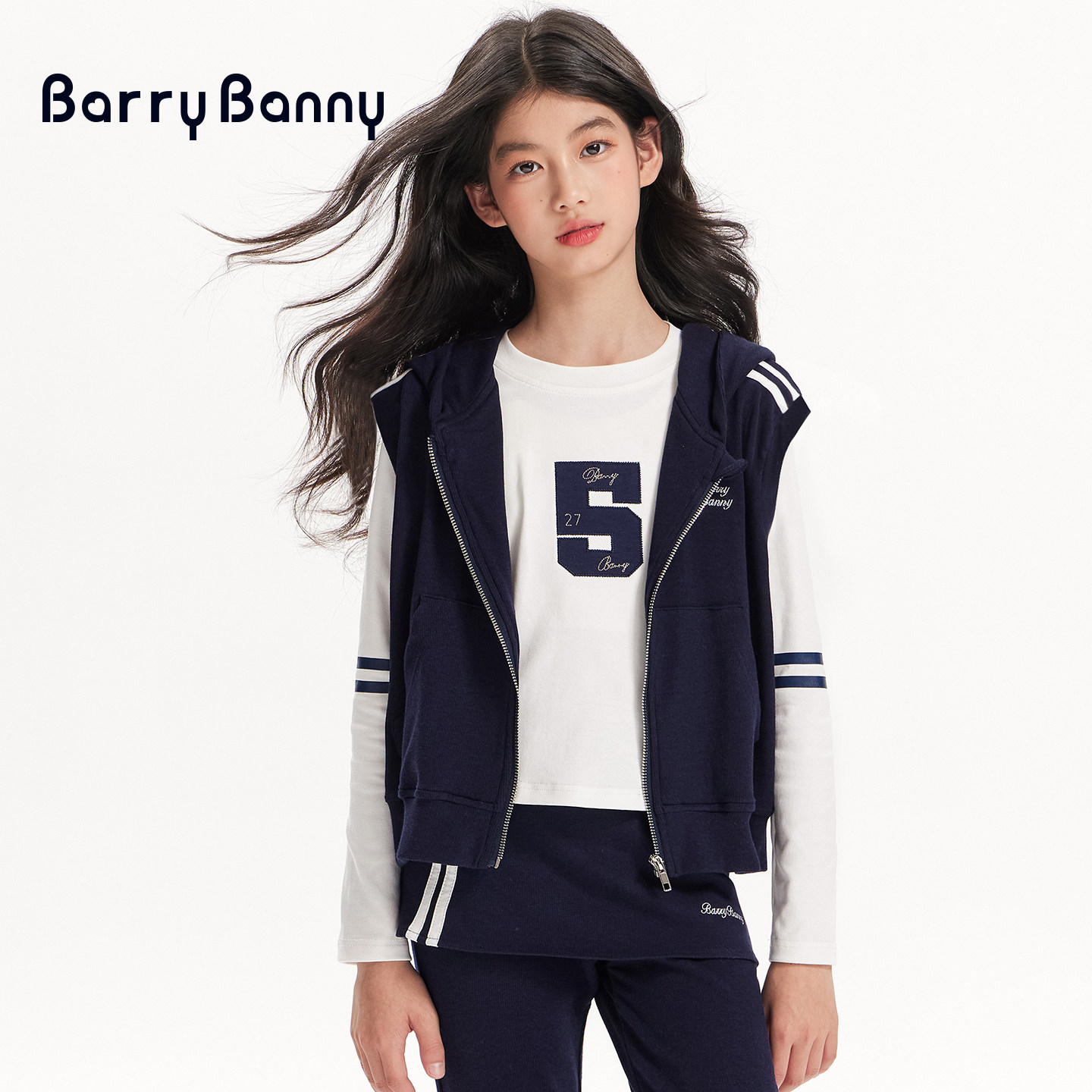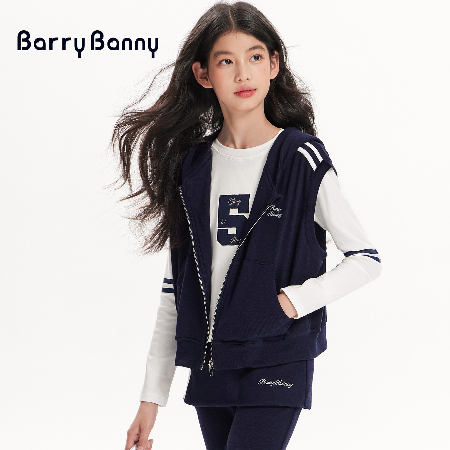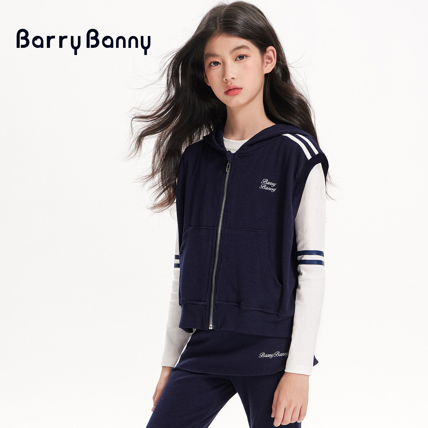 BarryBanny女童套装2026新款春季运动无袖连帽上衣儿童休闲喇叭裤