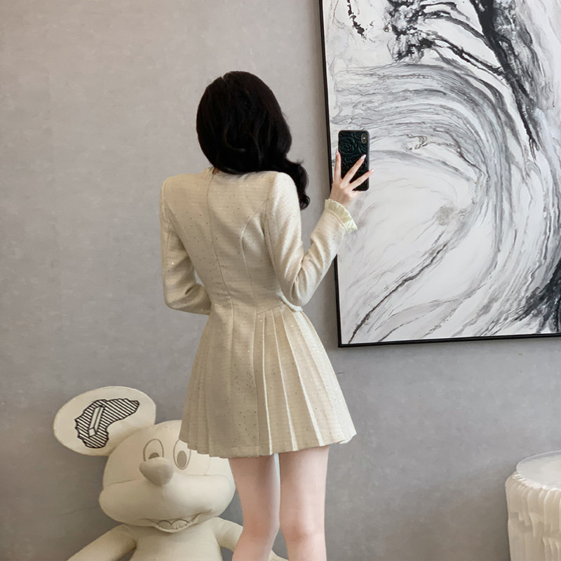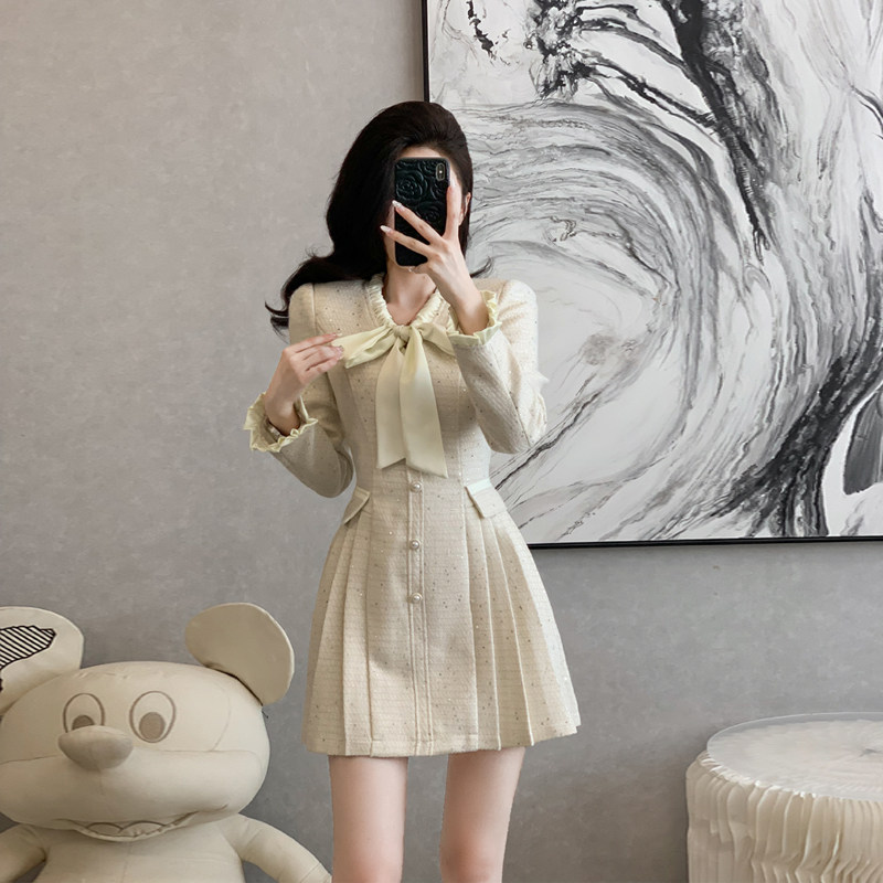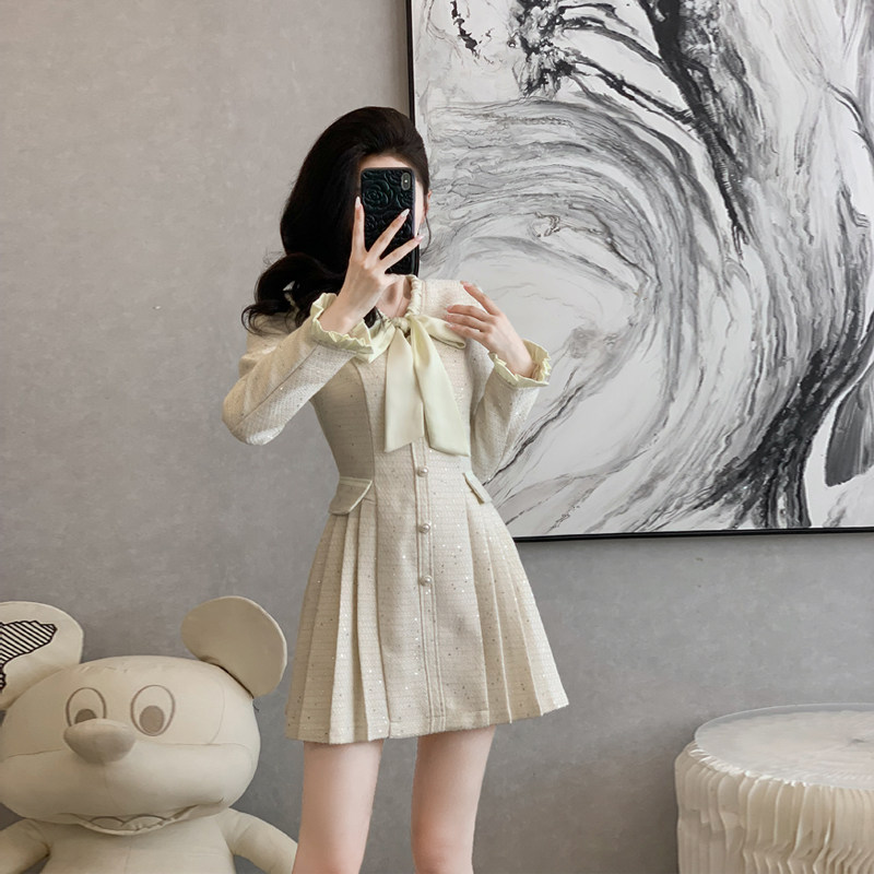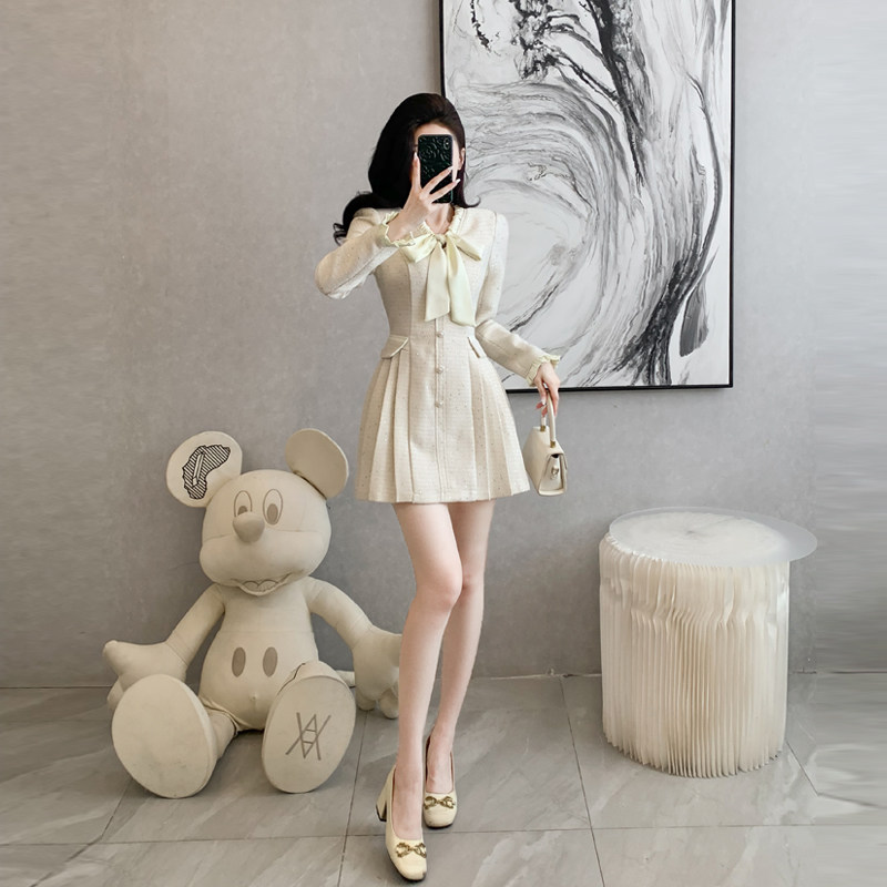 复古小香风长袖连衣裙女秋冬季短裙设计感小众小个子高端礼服裙子