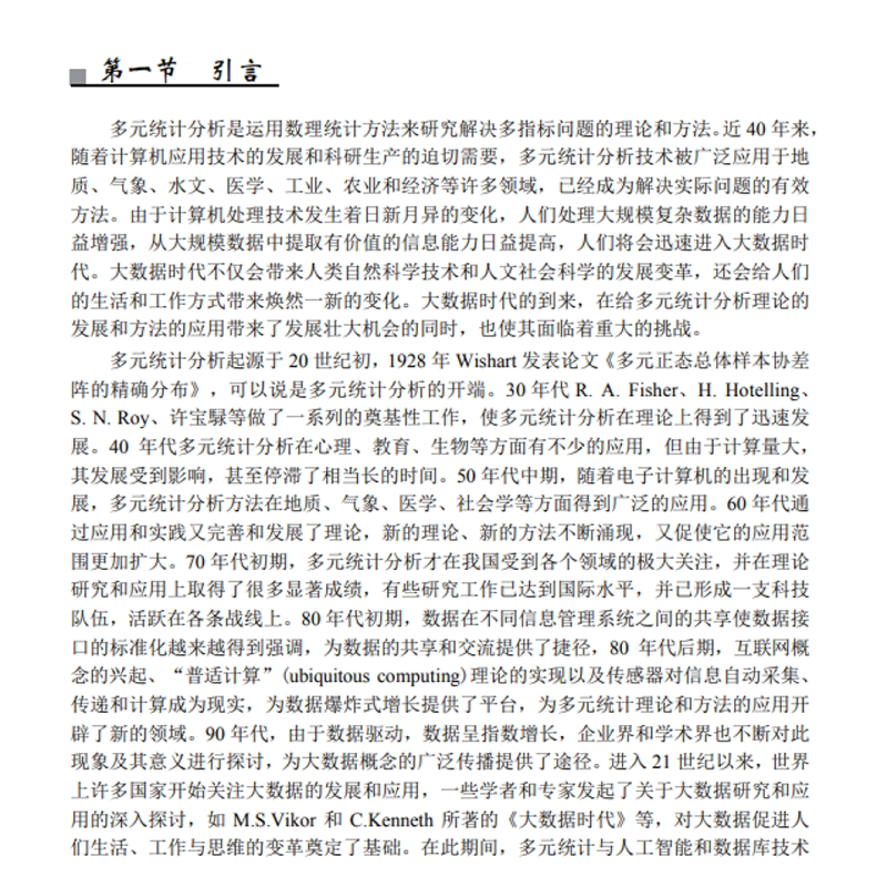 应用多元统计分析 第四版 多元统计分析概述 大数据时代的多元统计分析 计算机在统计分析中的应用 距离判别法 主成分的性质