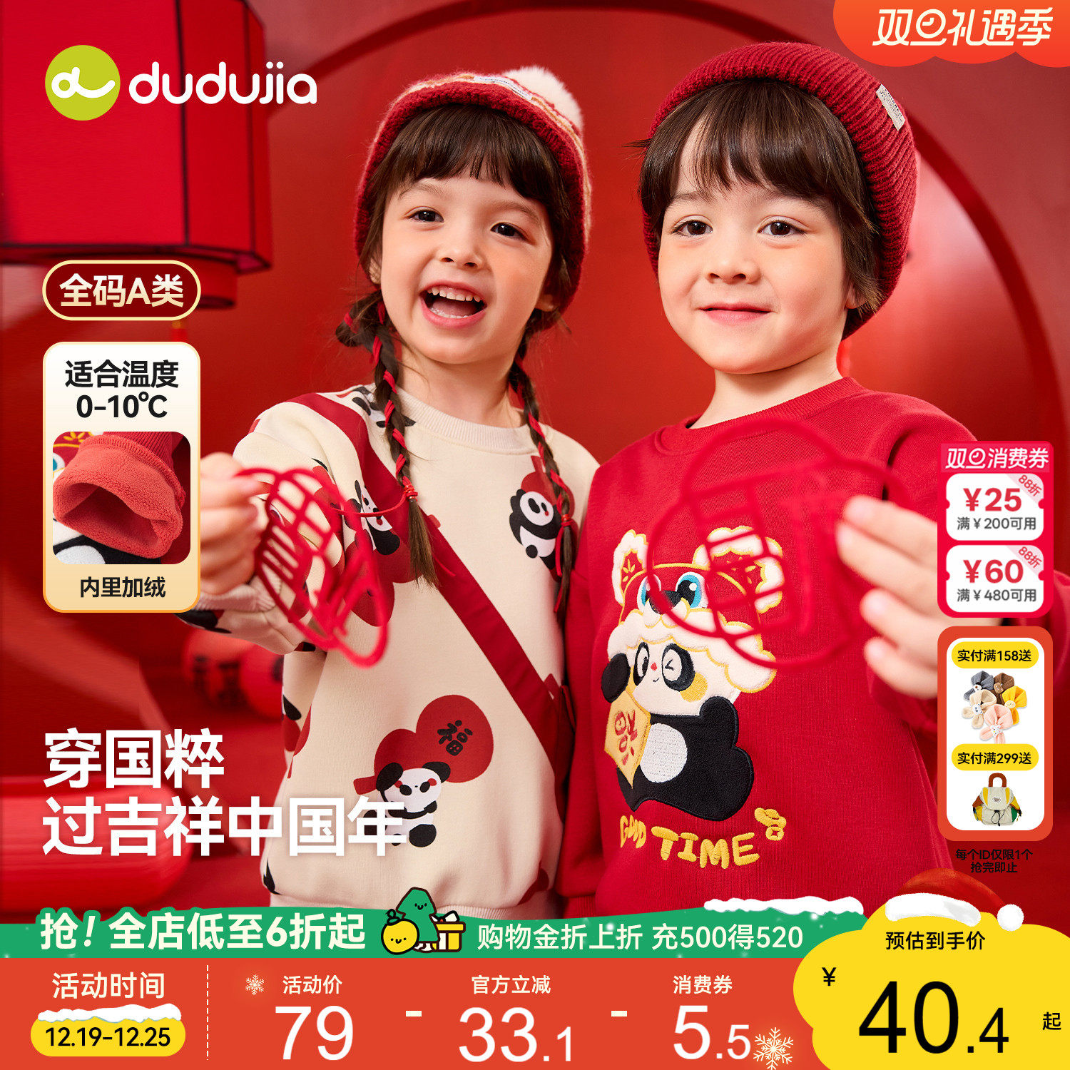 嘟嘟家儿童红色卫衣男童女童冬季衣服宝宝喜庆新年长袖上衣童装