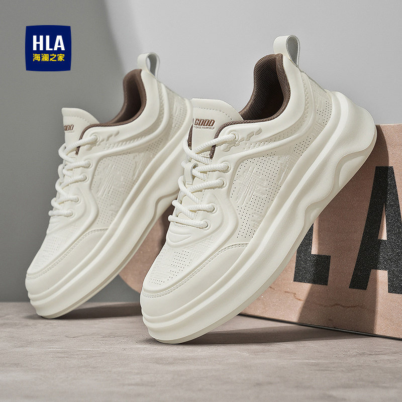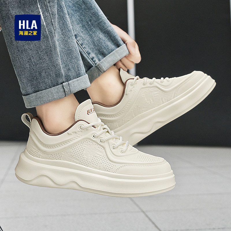 HLA/海澜之家男鞋新款春季休闲系带舒适增高板鞋透气男士小白鞋