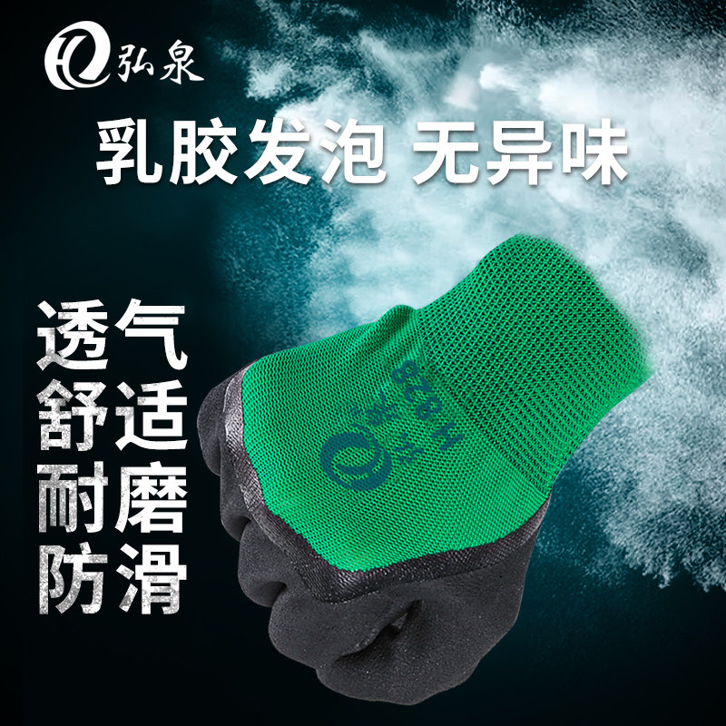 手套劳保耐磨工作男工地干活劳动乳胶带胶发泡王薄款橡胶透气防滑