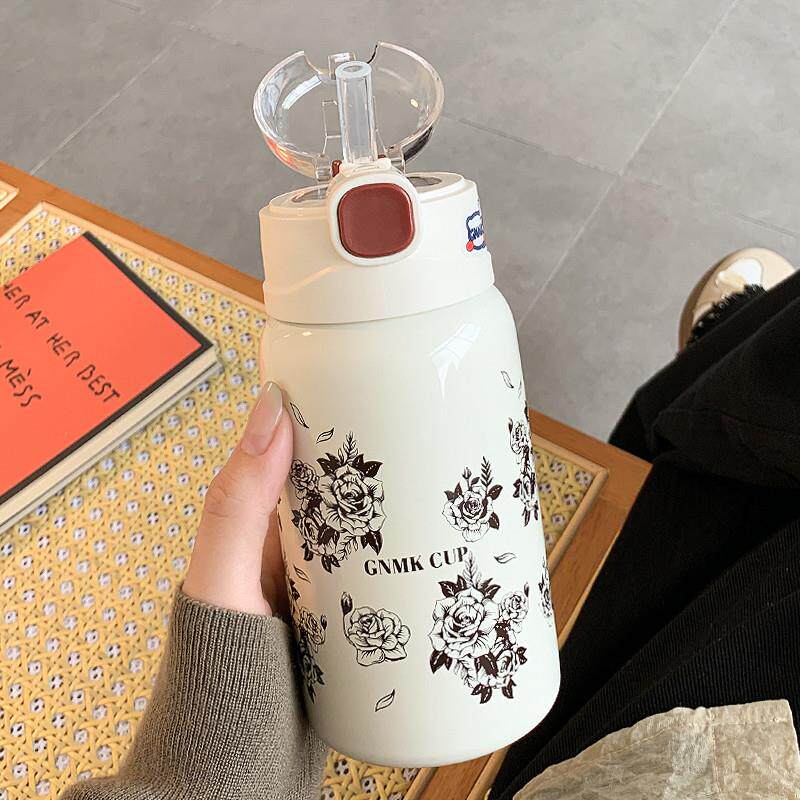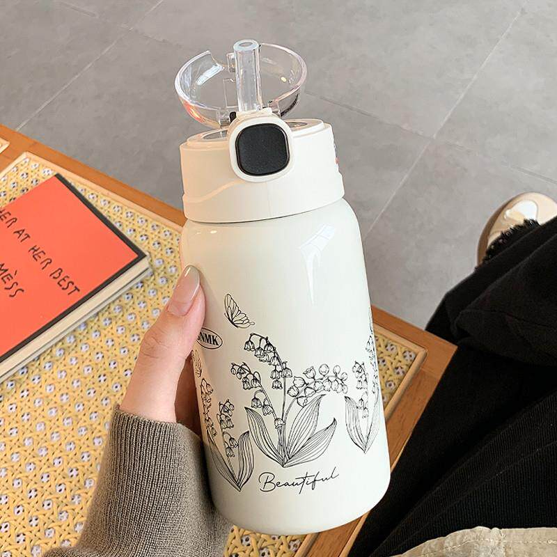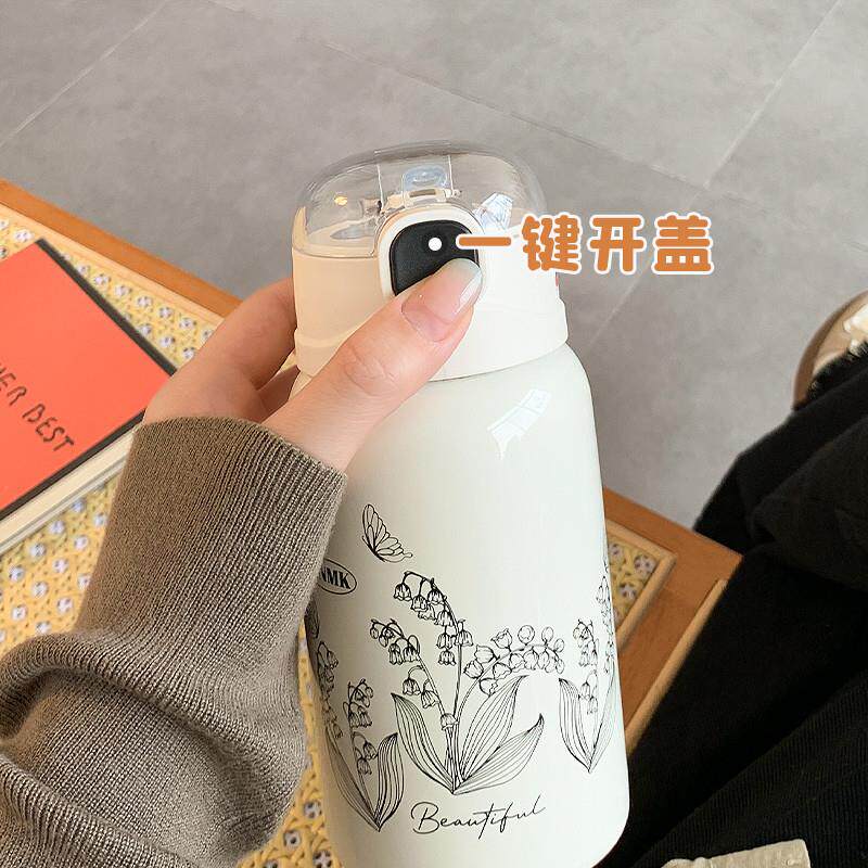 简约保温杯女生2025新款高颜值带吸管水杯女士不锈钢小巧便携杯子