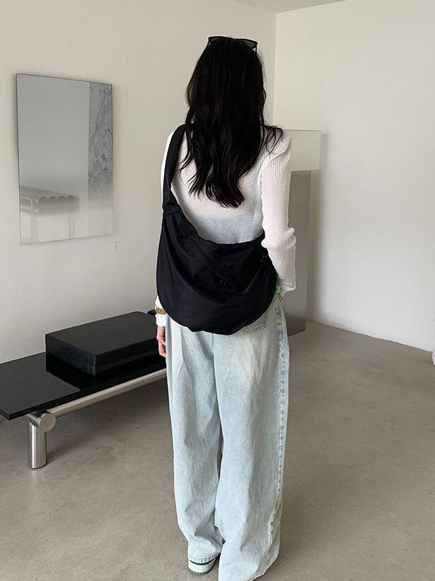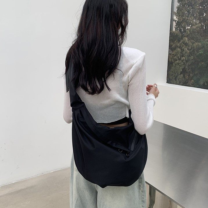 日系潮流宽肩带饺子包斜挎包男牛津布单肩大容量帆布包女黑色大包