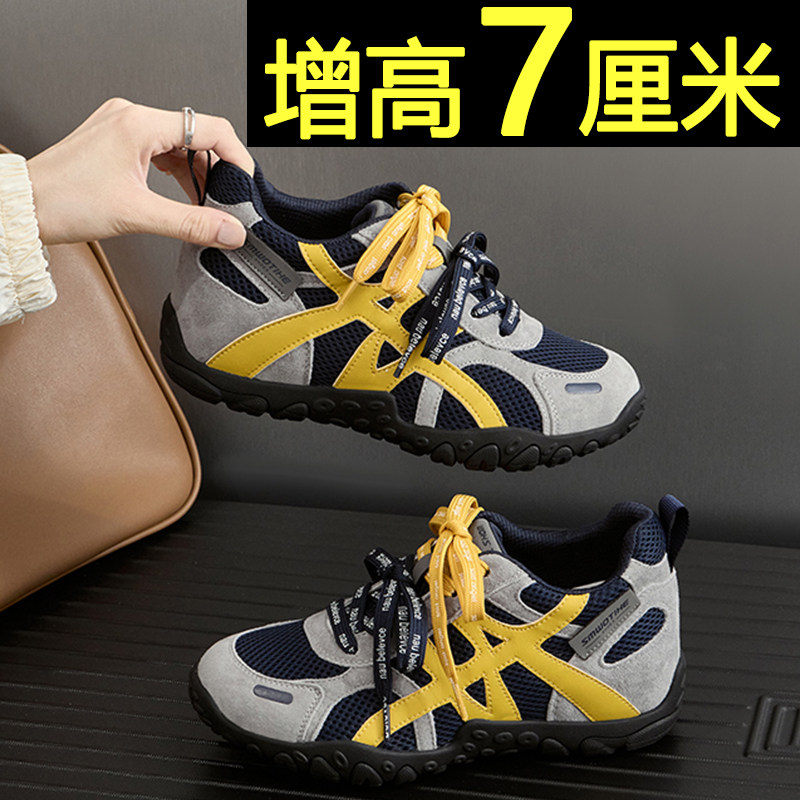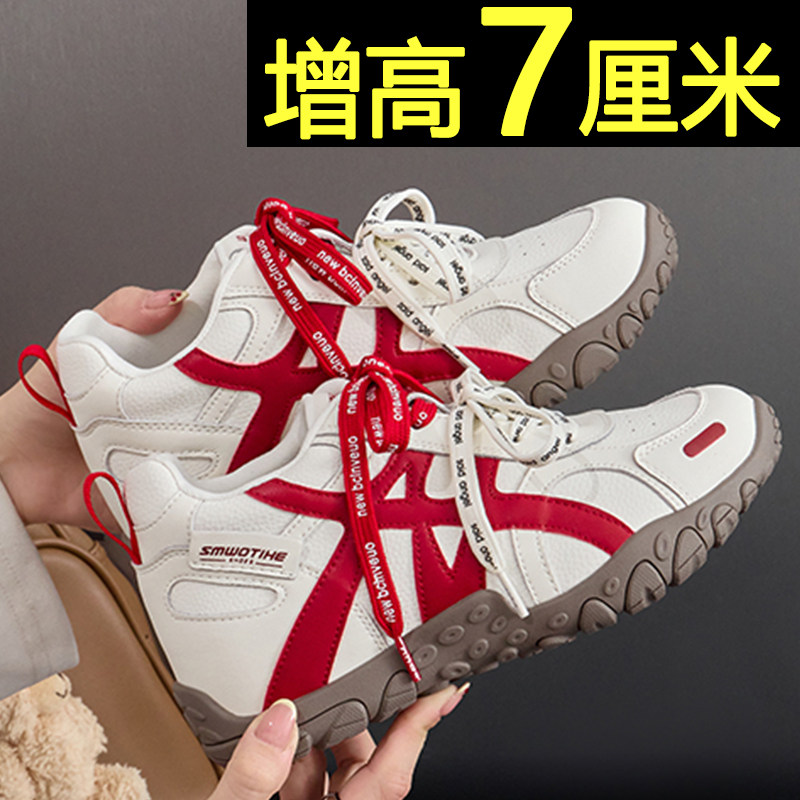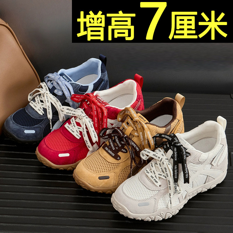 内增高德训鞋女2026新款网面透气复古百搭休闲运动小白鞋厚底女鞋