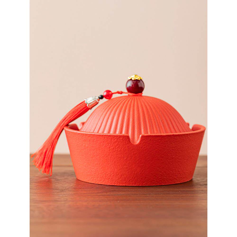 物息创意官帽烟灰缸家用客厅带盖防尘防飞灰时尚覆古陶瓷烟缸大号