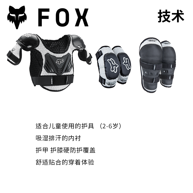 美国FOX儿童青少年护甲护膝护肘平衡车滑步车越野摩托自行车护具