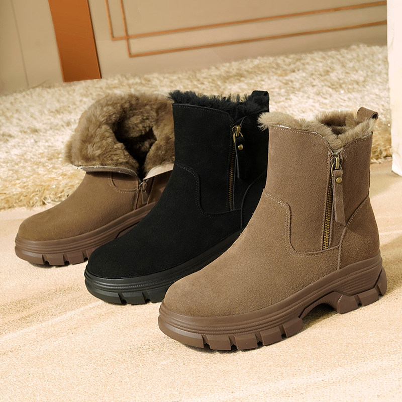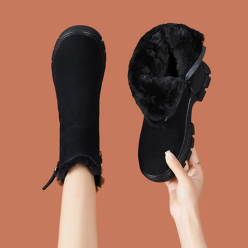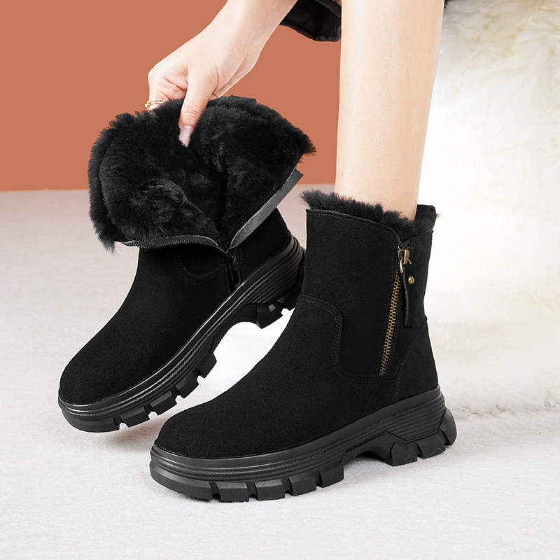 东北厚底雪地靴女款冬季女鞋加绒加厚大棉鞋妈妈真皮羊毛靴子防滑