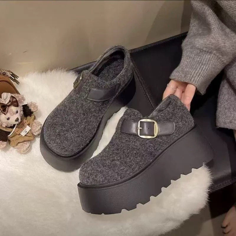 厚底灰色勃肯鞋子女2026新款爆款超火冬季女鞋一脚蹬加绒乐福棉鞋