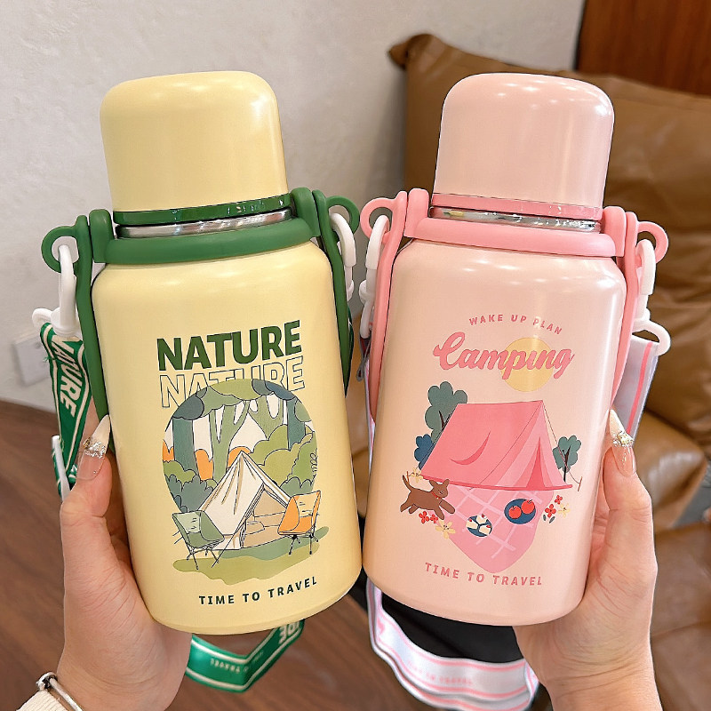 保温杯大容量男款316不锈钢杯子女双饮吸管杯可斜挎便携水壶带盖