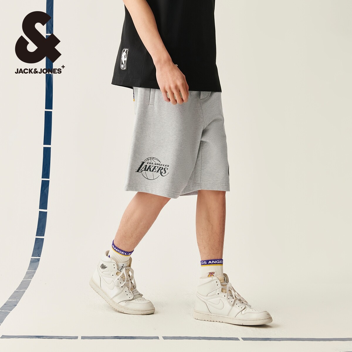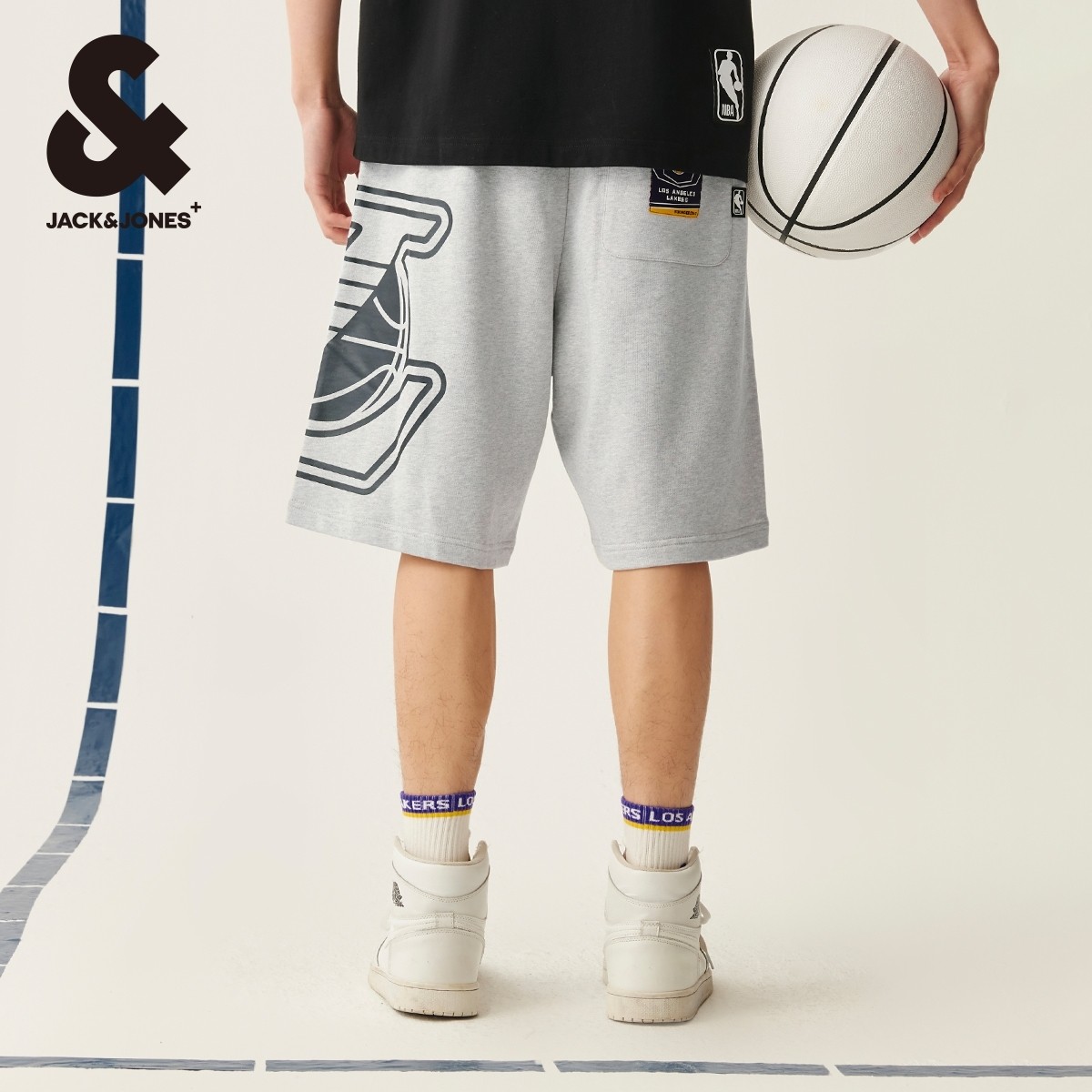 311线报网描述:背后单侧贴袋、单侧湖人队贴布设计