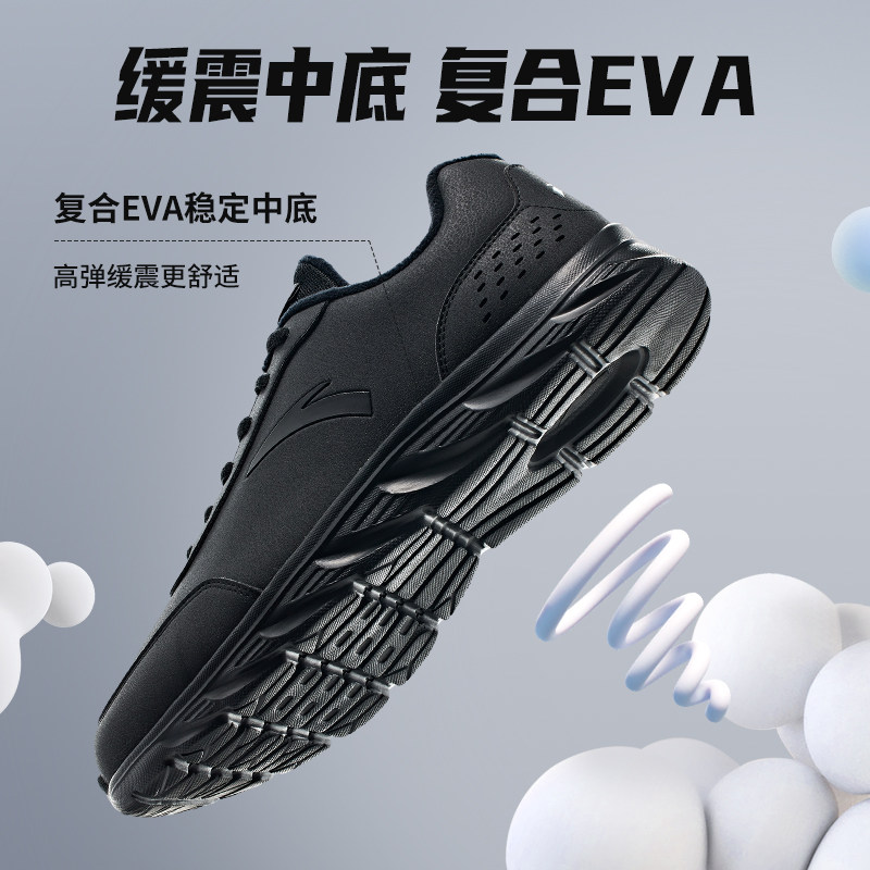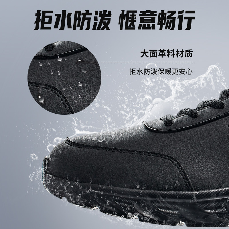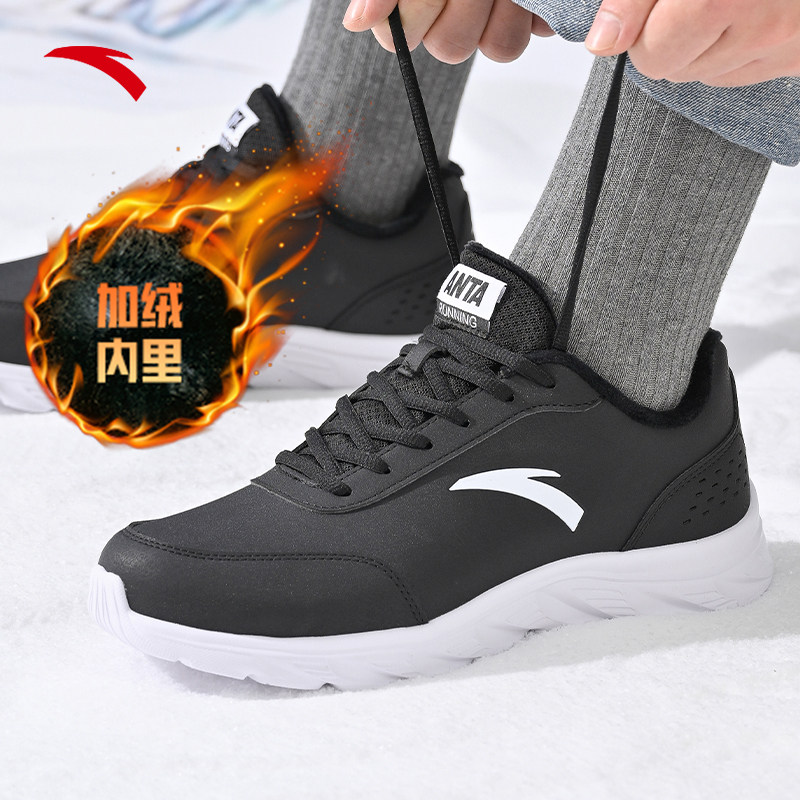 安踏男鞋冬季加绒运动鞋男2024新款皮面保暖鞋子黑色跑步鞋子男款