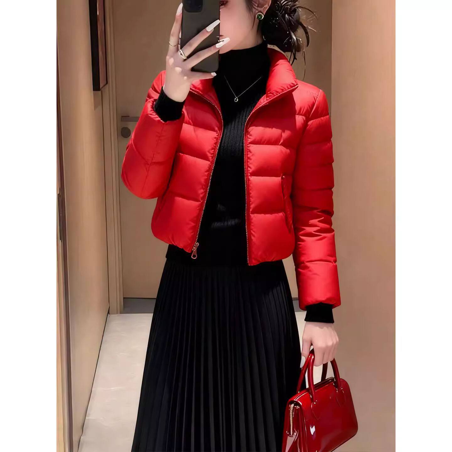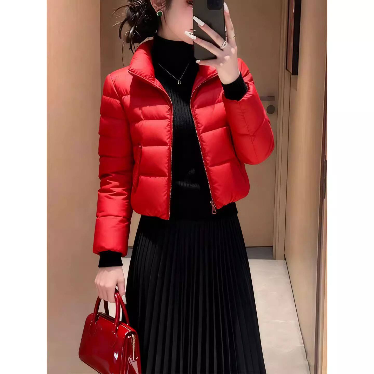 2026冬季新款黑色短款羽绒棉服女立领显瘦保暖修身小个子时尚棉衣