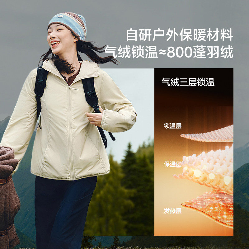 蕉下连帽气绒外套女款初秋新款防风轻薄保暖三防户外简约夹棉棉服