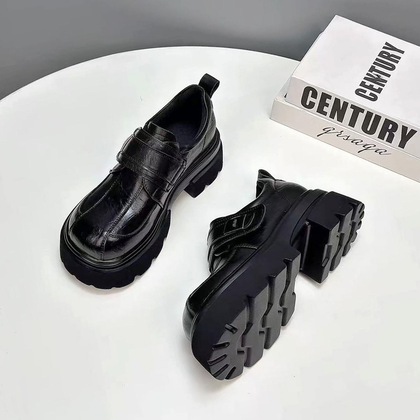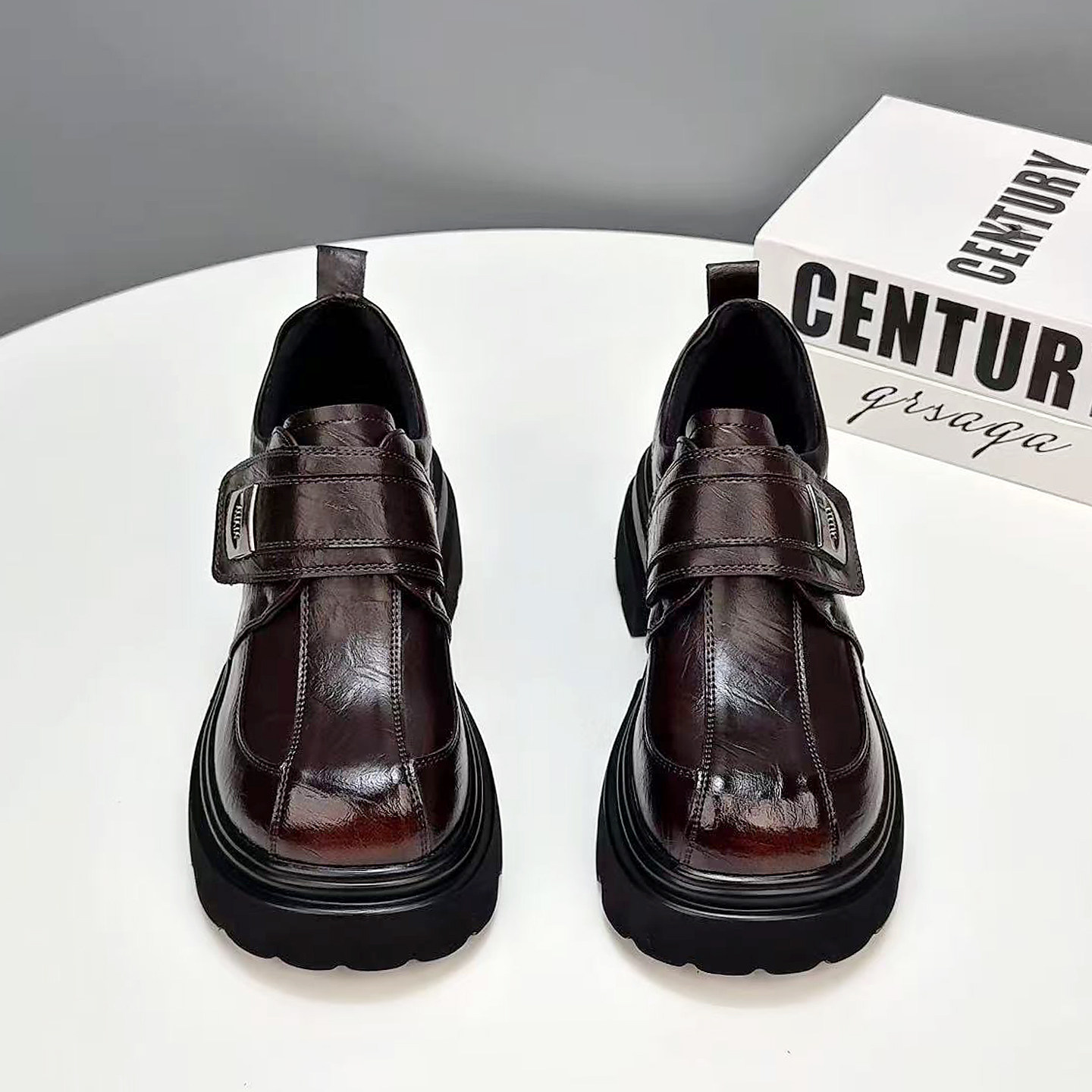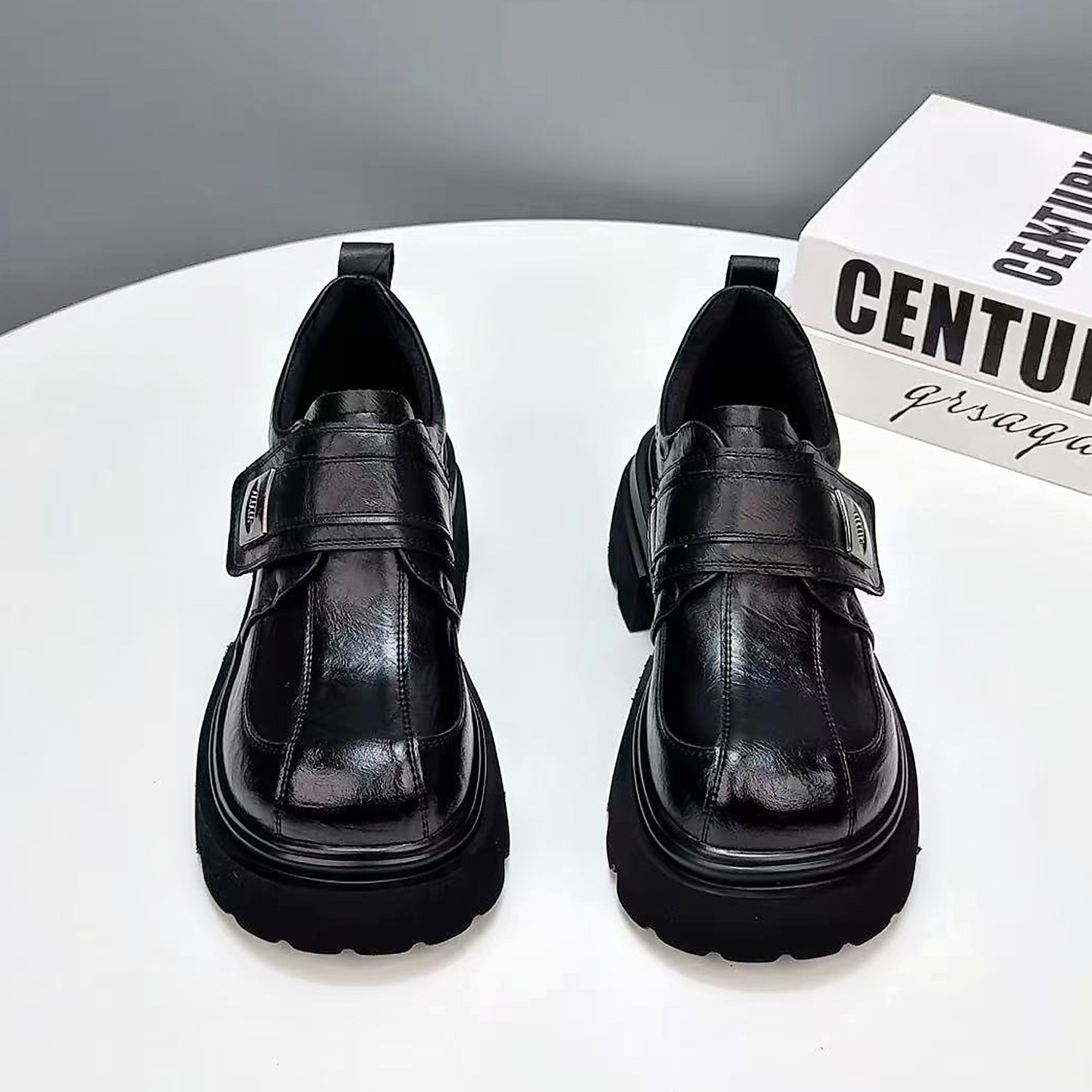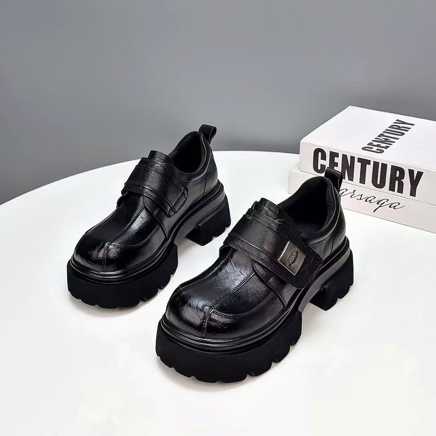 厚底乐福鞋女2026春季新款真皮欧货小个子百搭一脚蹬魔术贴小皮鞋