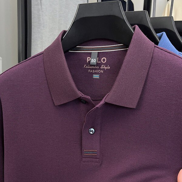 100%纯棉男士2025春秋季POLO衫商务休闲翻领长袖透气T恤男款宽松