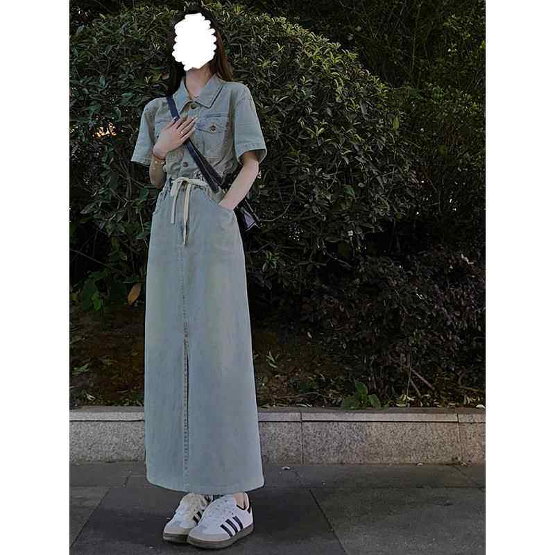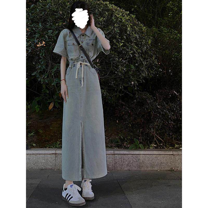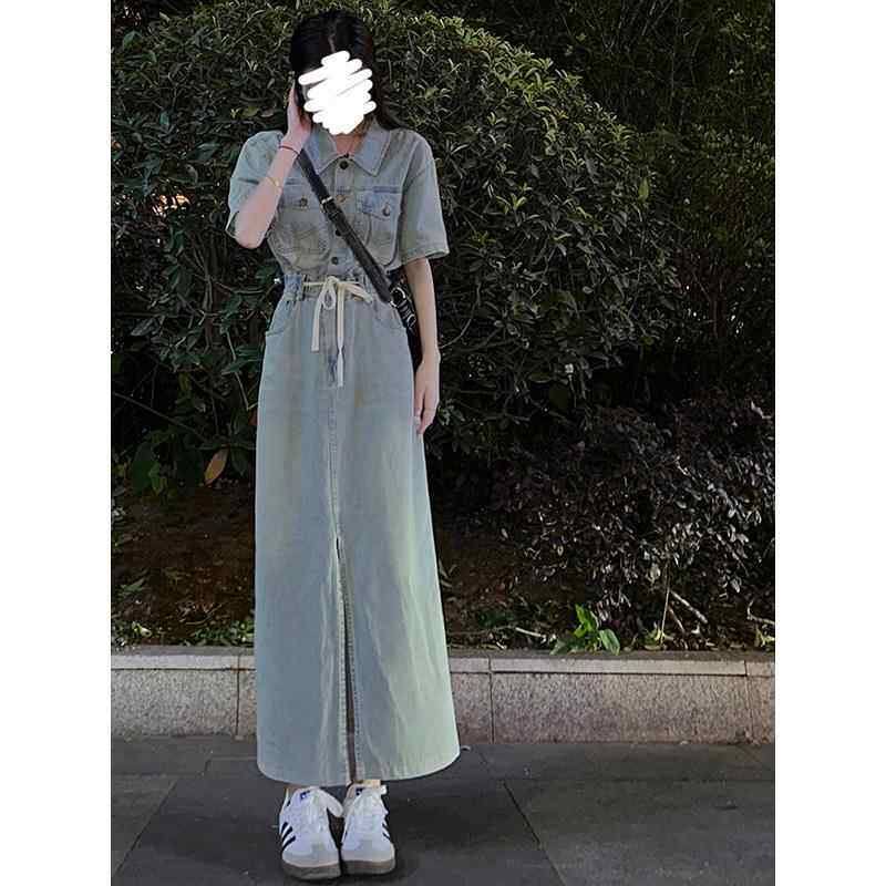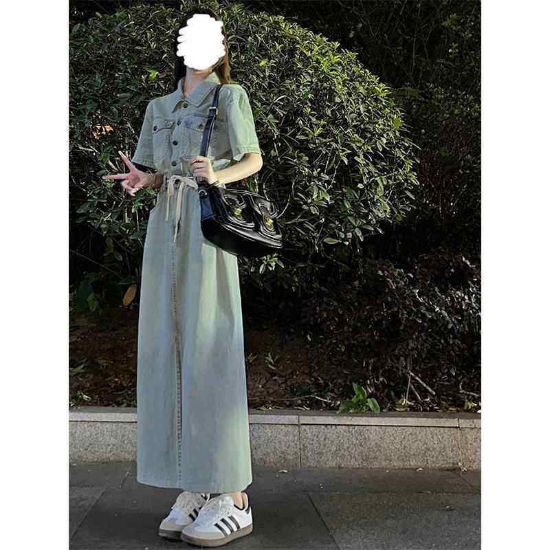 牛仔连衣裙女装夏季港风复古裙子度假风微胖法式长裙小个子高级感