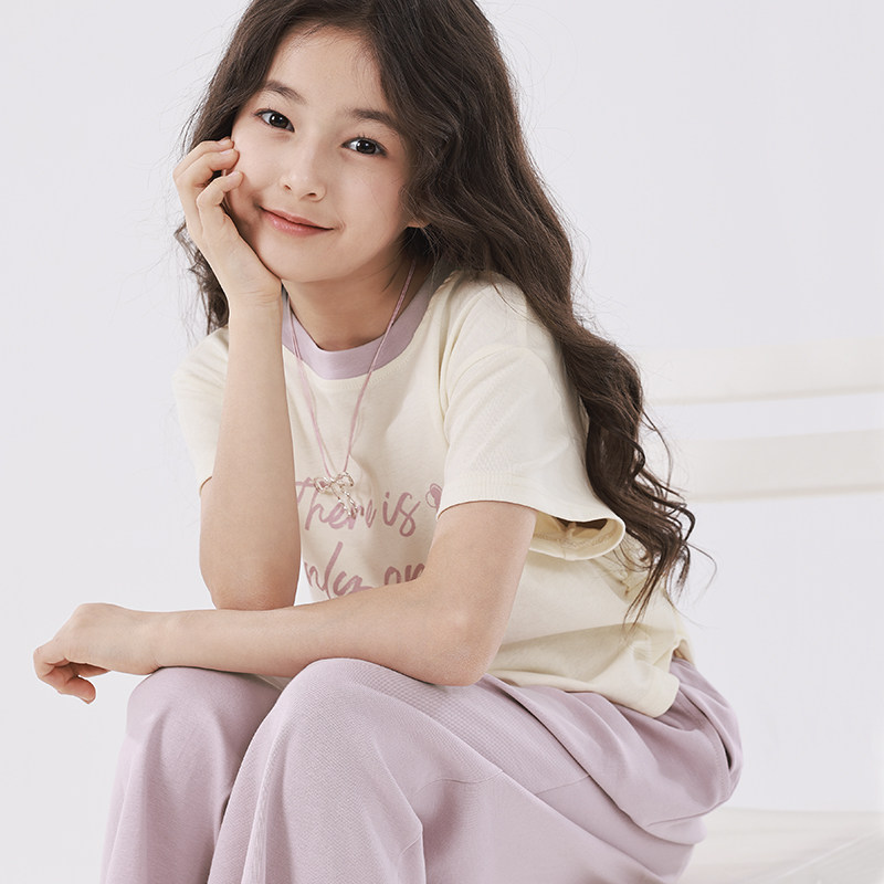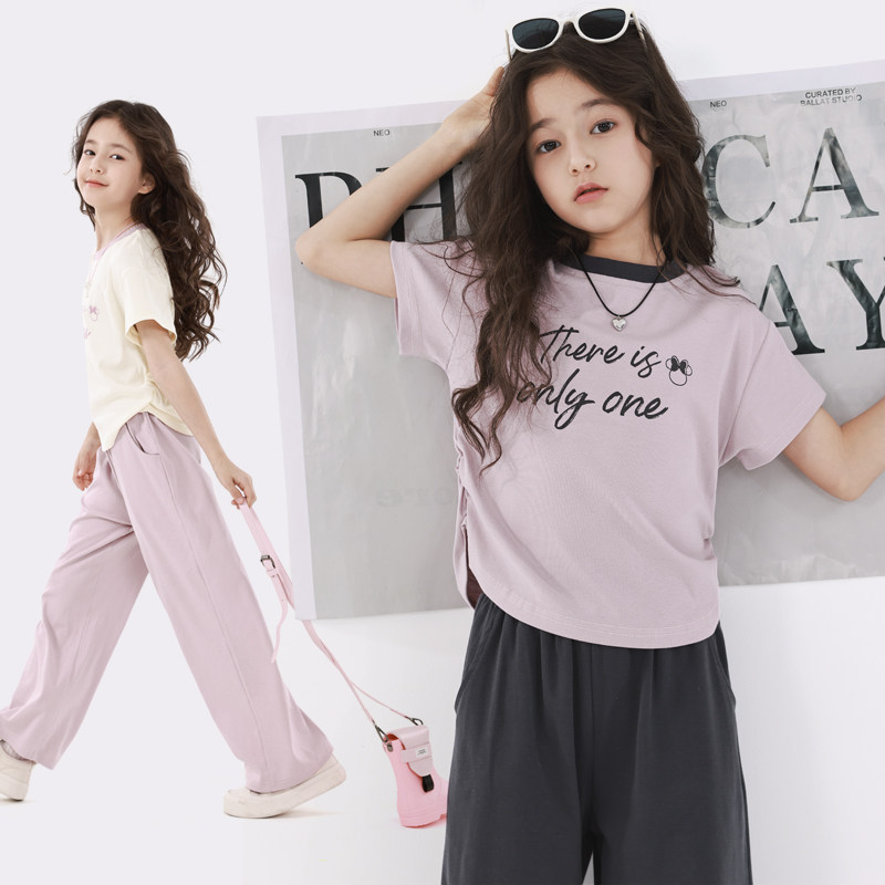 迪士尼女童套装26夏季新款青少年短袖T恤长裤两件套薄款亲子套装