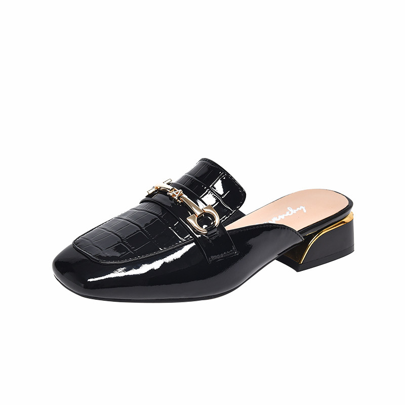2026新款方头软漆皮包头半拖鞋女夏外穿平底单鞋乐福鞋软底真皮鞋
