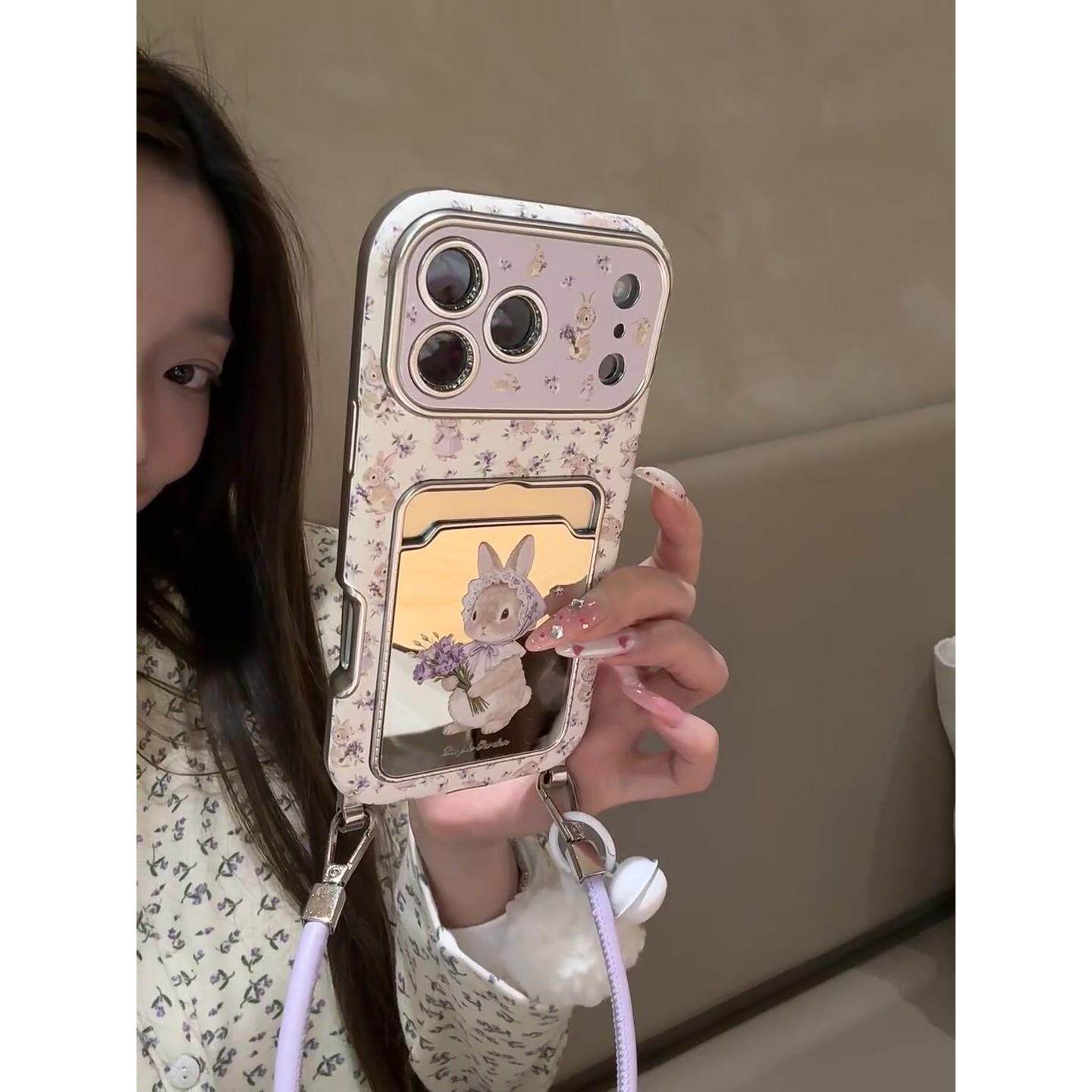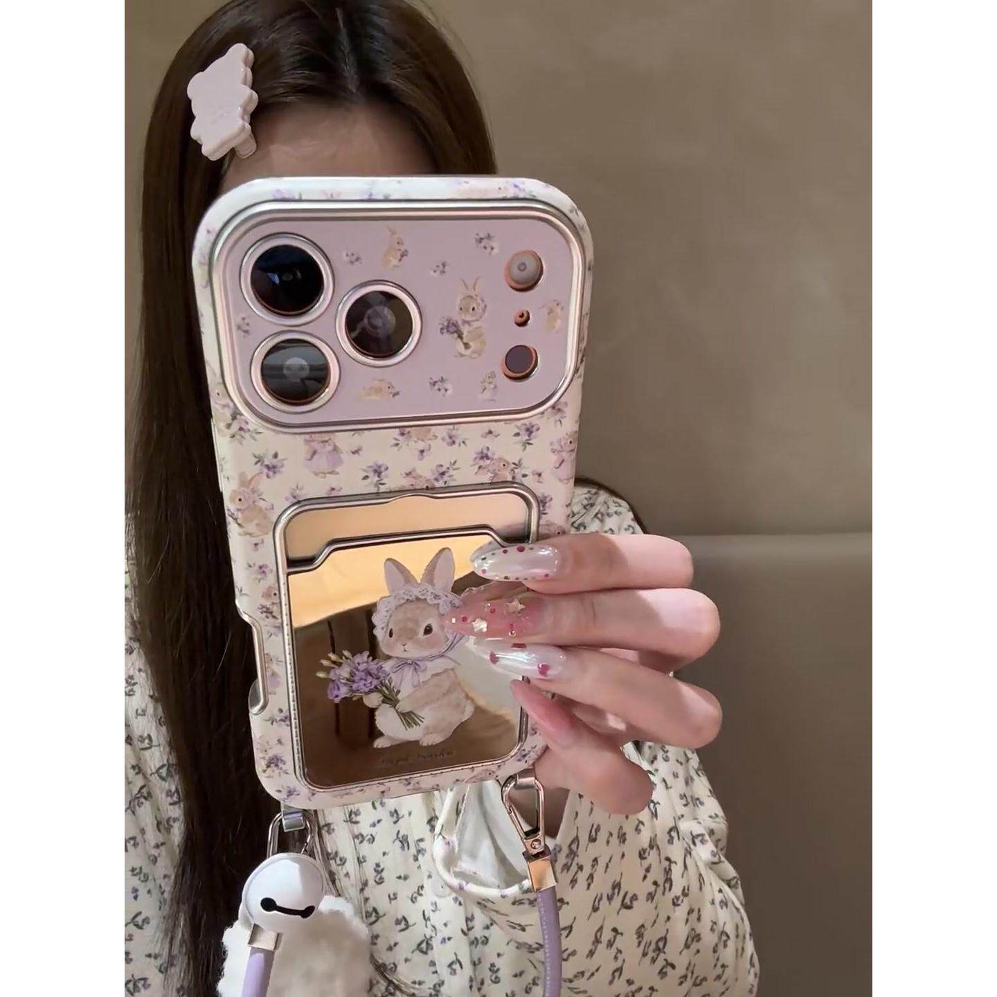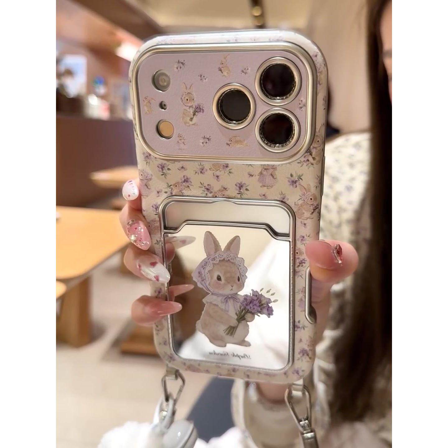半糖壳野ins紫色碎花头巾小兔卡包适用iPhone17promax手机壳苹果16pro腕带15防摔14pro新款13防摔17保护套